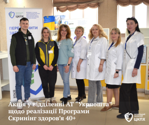 Так, сьогодні у Всесвітній день здоров’я на локації головного запорізького відділення АТ «Укрпошта» медикині відділу епідеміологічного нагляду та профілактики неінфекційних хвороб під керівництвом завідувачки Вікторії Черкасової провели акцію, присвячену реалізації Програми Скринінг здоров’я 40+. Програма передбачає раннє виявлення серцево-судинних захворювань, цукрового діабету і проблем психічного здоровʼя.