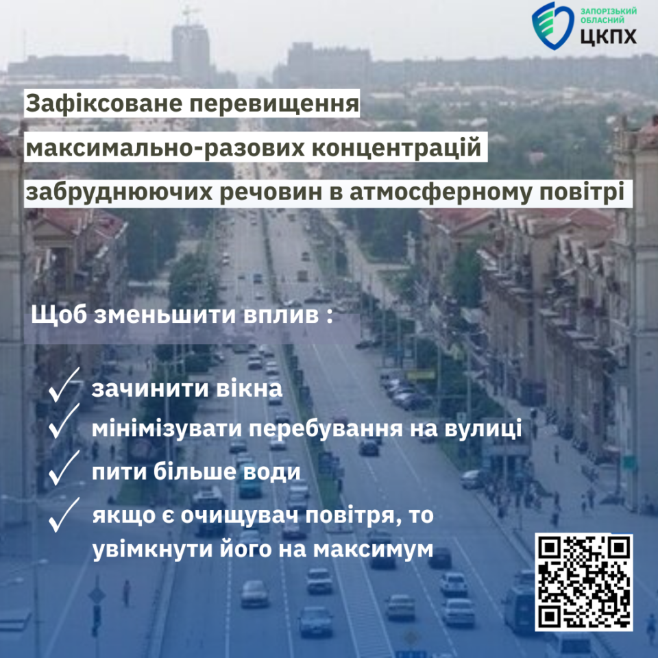 Фахівцями ДУ «Запорізький обласний центр контролю та профілактики хвороб» протягом дня були проведені планові моніторингові дослідження атмосферного повітря на території житлової забудови по північному напрямку факелу викидів в точках міста Запоріжжя з визначенням максимально-разових концентрацій оксиду вуглецю, сірководню, ангідриду сірчистого, формальдегіду, аміаку, азоту оксиду, азоту діоксиду, фенолу, бензолу, толуолу, ксилолу, ацетону, етилацетату, бутилацетату, пилу недиференційованого за складом, хлору, кислоти сірчаної, водню хлористого.