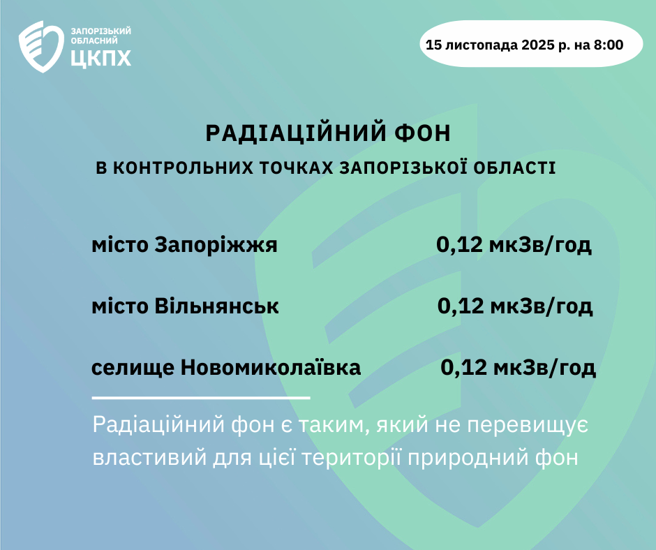 Радіаційний фон в контрольних точках Запорізької області 15 листопада на 8:00 годин