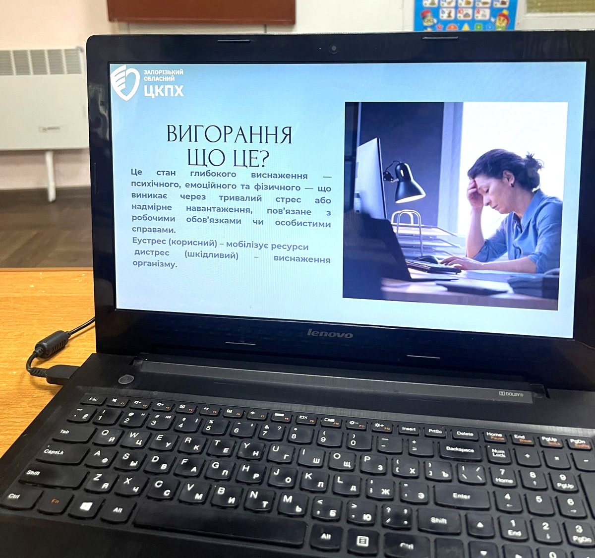 Під час інформаційного заходу Наталія Кирилова акцентувала увагу на визначенні ментального здоров’я, факторах впливу, розповіла, як мінімізувати вплив стресу та запобігти емоційному вигоранню. Також торкнулися важливої теми ментального здоров’я дітей під час війни.