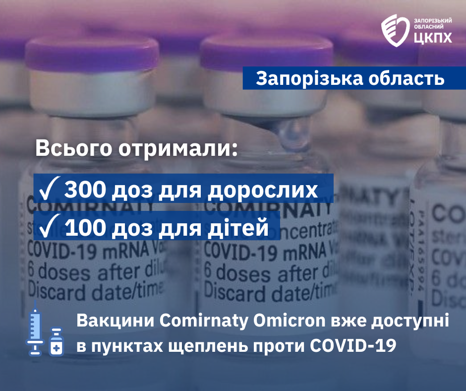 400 доз вакцини COMIRNATI Оmicron проти ковіду доставлено у пункти щеплення Запорізької області