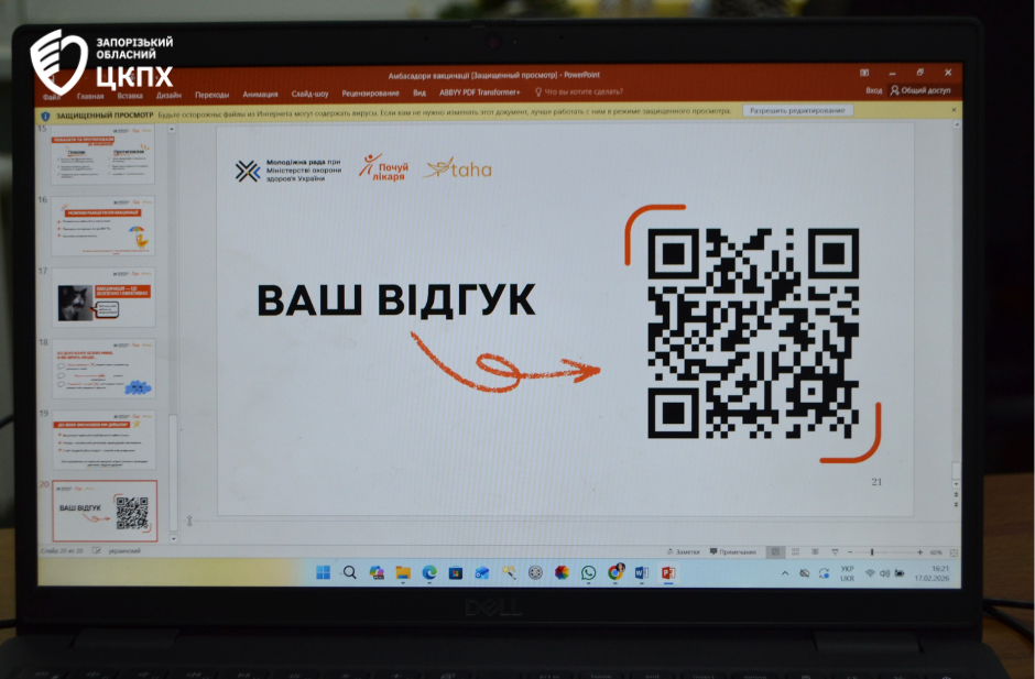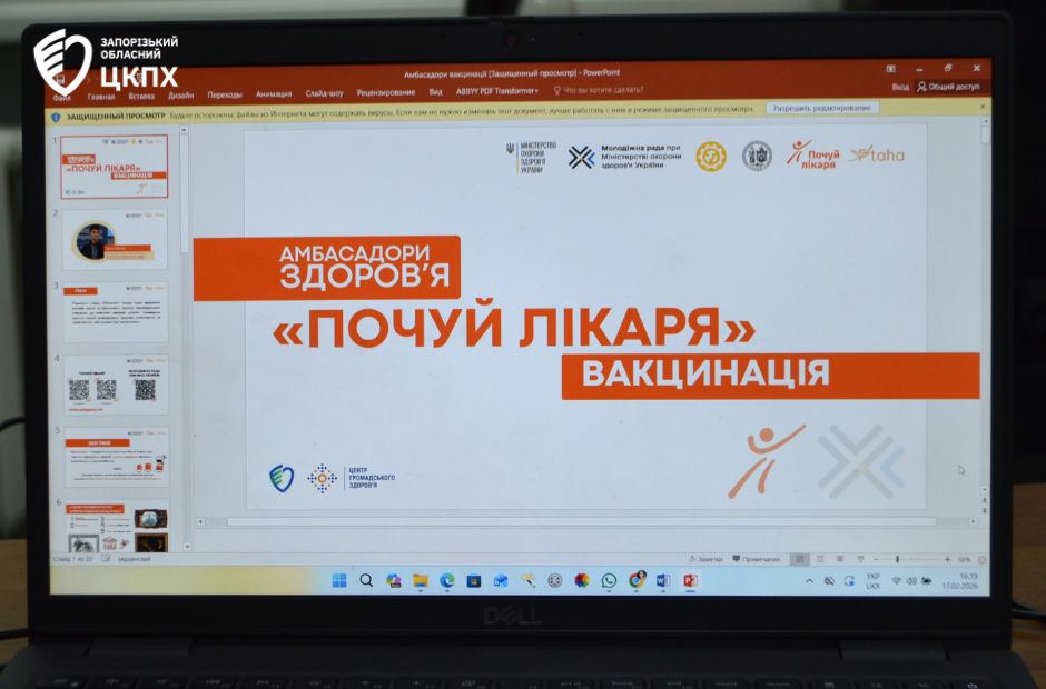 18 лютого 202617 лютого для студентів Запорізького медичного фахового коледжу відбулася цікава зустріч. Локальний керівник проєкту «Амбасадори Здоров’я» в Запорізькій області, амбасадор здоров’я в напрямку вакцинації, лікар-епідеміолог Запорізького ОЦКПХ Денис Івченко розповів майбутнім медичним фахівцям про реалізацію проєкту «Амбасадори здоров’я. Почуй лікаря» та представив презентацію з теми щодо вакцинації.
