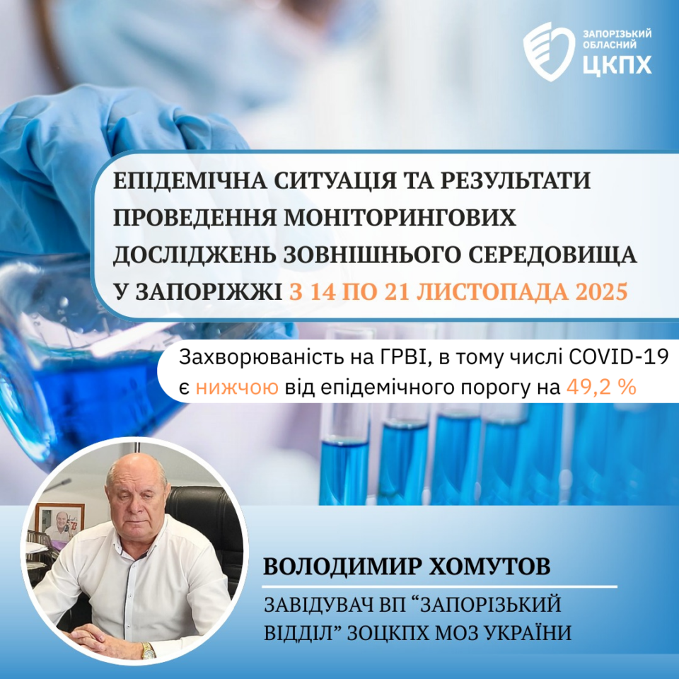 Аналіз епідемічної ситуації та проведення моніторингових досліджень зовнішнього середовища в Запоріжжі з 14 листопада по 21 листопада 2025 року