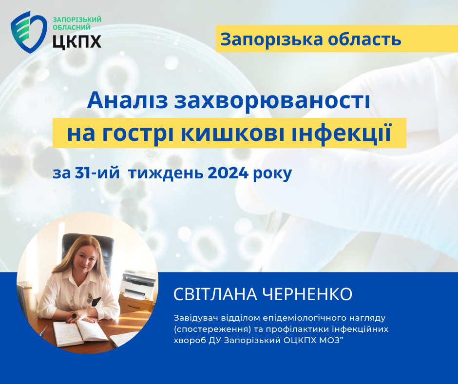 Аналіз захворюваності на гострі кишкові інфекції за 31-ий тиждень 2024 року в Запорізькій області