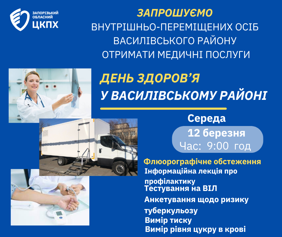 Запрошуємо внутрішньо-переміщених осіб Василівського району взяти участь у Дні здоров’я !