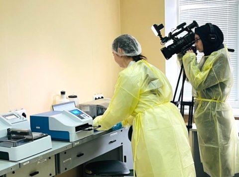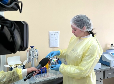 Лікарка-бактеріологиня лабораторії особливо небезпечних інфекцій Віталіна Жученко продемонструвала знімальній групі як виконуються квантиферонові тести, за допомогою яких здійснюється сучасний високоточний аналіз крові для діагностики латентної туберкульозної інфекції.