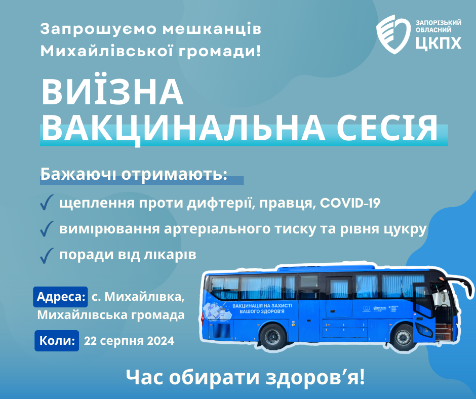 Анонс: виїзна вакцинальна сесія в Михайлівську громаду 22.08.2024