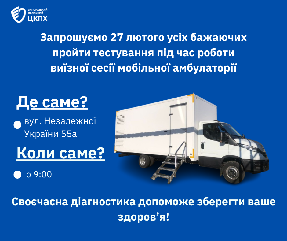 Анонс виїзної сесії мобільної амбулаторії в м. Запоріжжя 27 лютого 2025 року