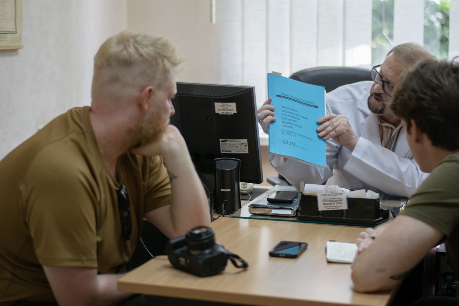 Спершу журналісти звернулися до заступника генерального директора з дослідження біологічних факторів Олександра Мащака щодо становища на ЗАЕС. Керівник запевнив, що Центр провадить щоденний моніторинг радіаційного фону для постійного інформування населення.