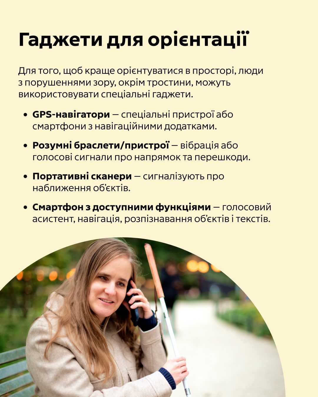 Як виникла ця дата? Що, окрім тростини, може допомогти людям із порушенням зору бути мобільними? Відповіді на ці й інші важливі питання підготували на картках!