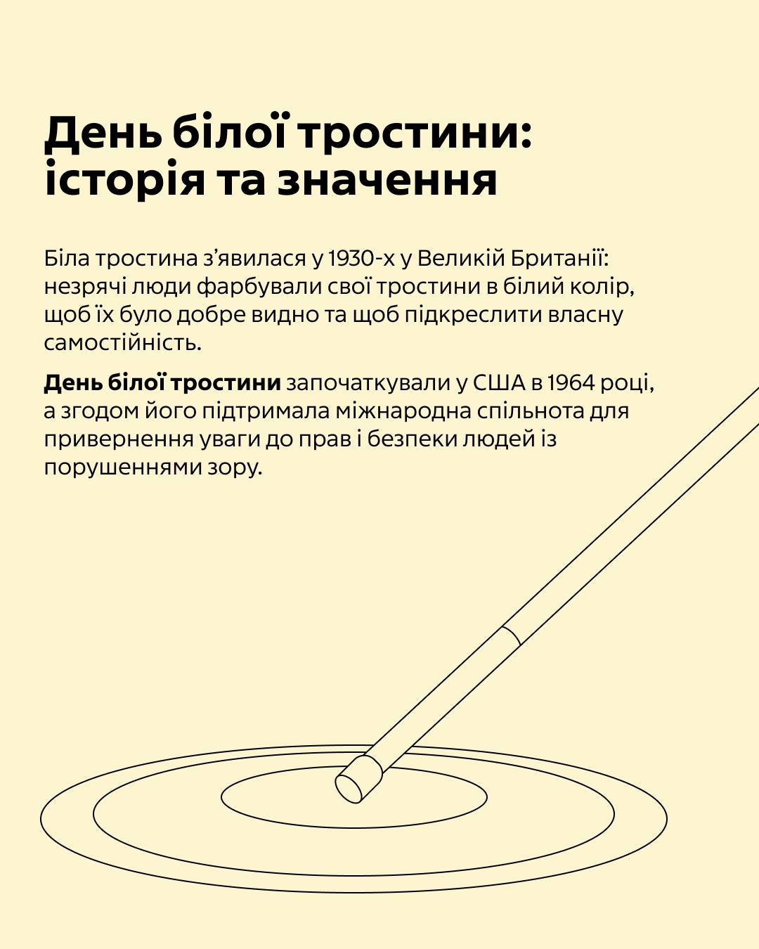Адже біла тростина – це не лише допоміжний засіб. Це символ самостійності, свободи й рівності людей із порушенням зору.