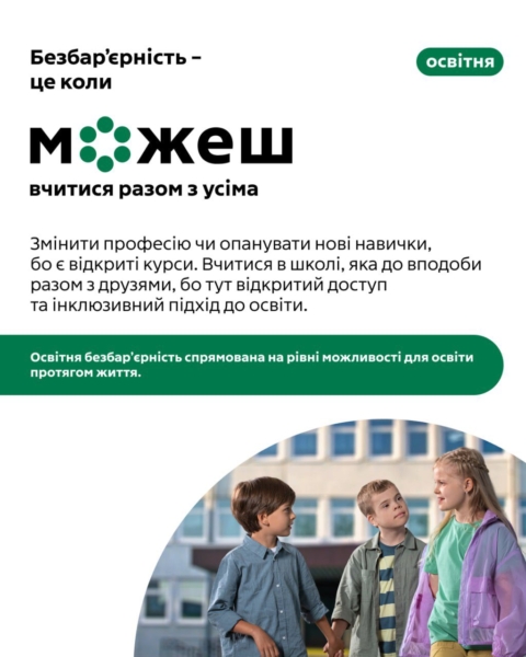 «Безбар’єрність – це коли можеш» – усеукраїнська кампанія соціальних змін, яка є частиною Національної стратегії зі створення безбарʼєрного простору та реалізується спільно з ЮНІСЕФ у межах ініціативи першої леді України Олена Зеленська «Без бар’єрів».