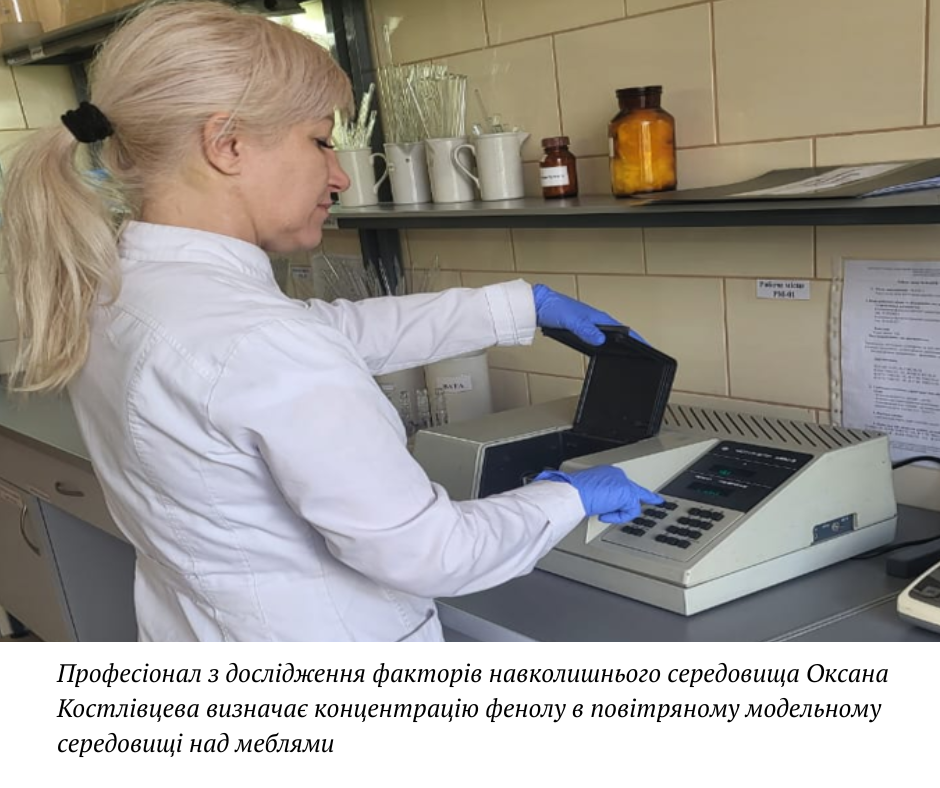 Щоб визначити, що є пріоритетним джерелом забруднення, зразок меблів або оздоблювальних матеріалів досліджується в лабораторних умовах.