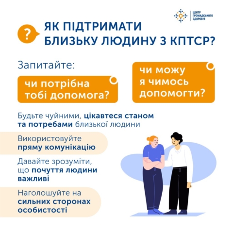 Якщо ви помічаєте у близької людини ознаки ПТСР, ви не можете змушувати її звернутись по медичну допомогу. Фраза «думаю, тобі краще звернутись по допомогу до психолога/психотерапевта/психіатра» є некоректною і може бути неприємною для людини, а часом може викликати навіть агресію чи глибоку образу. Краще в такому випадку запитати «чи потрібна тобі допомога?», «чи можу я чимось допомогти?».
