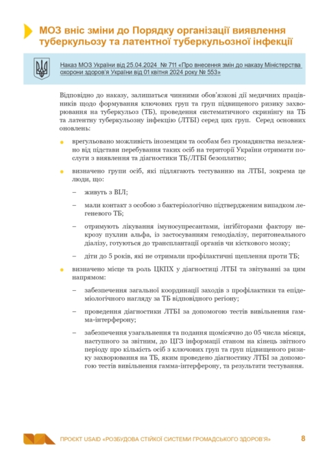 7 серпня 2024Пропонуємо до вашої уваги четвертий випуск Інформаційного бюлетеня нормативних змін у сфері громадського здоров’я, підготовлений проєктом USAID «Розбудова стійкої системи громадського здоров’я».