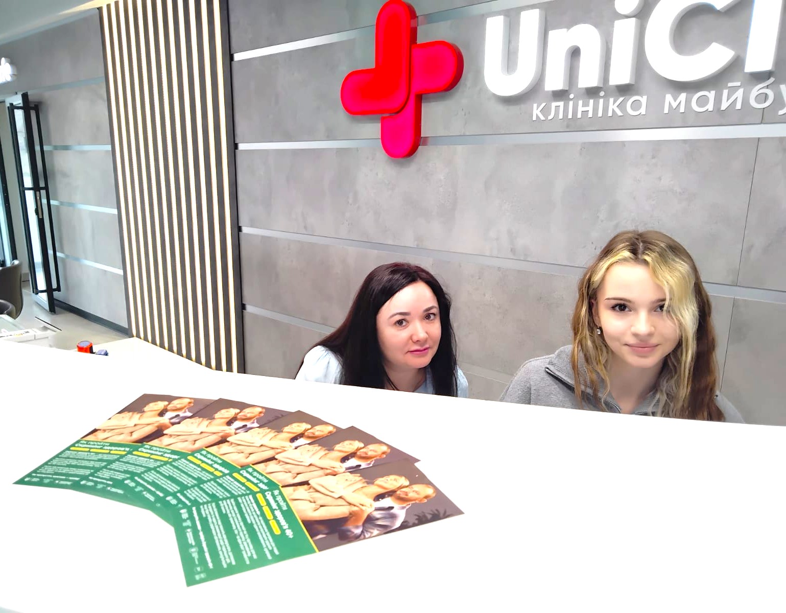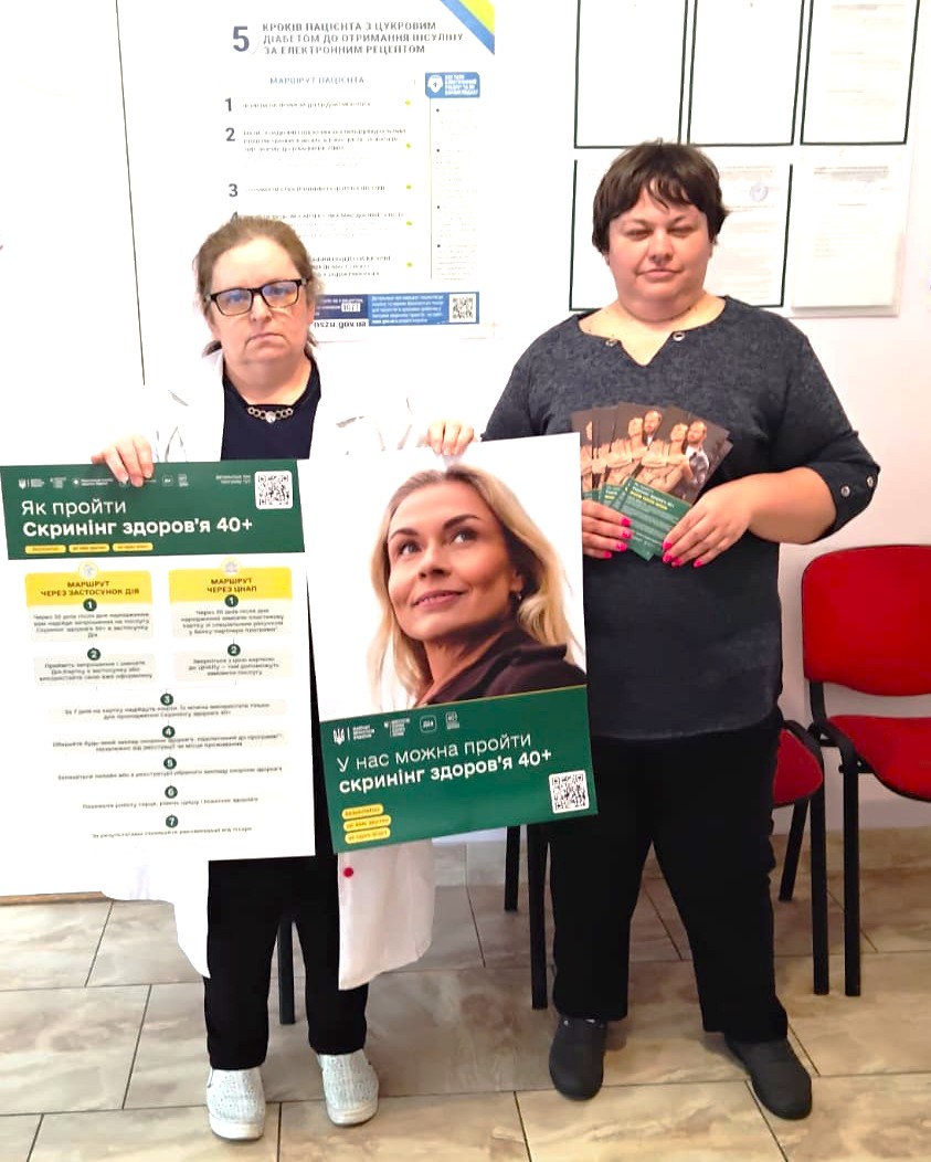 30 березня 2026 року « Приватної клініки «UniClic» та Клініки первинної медичної допомоги №1 отримали тематичні друковані матеріали: плакати, буклети, наліпки «У нас можна пройти скринінг здоров’я 40+».