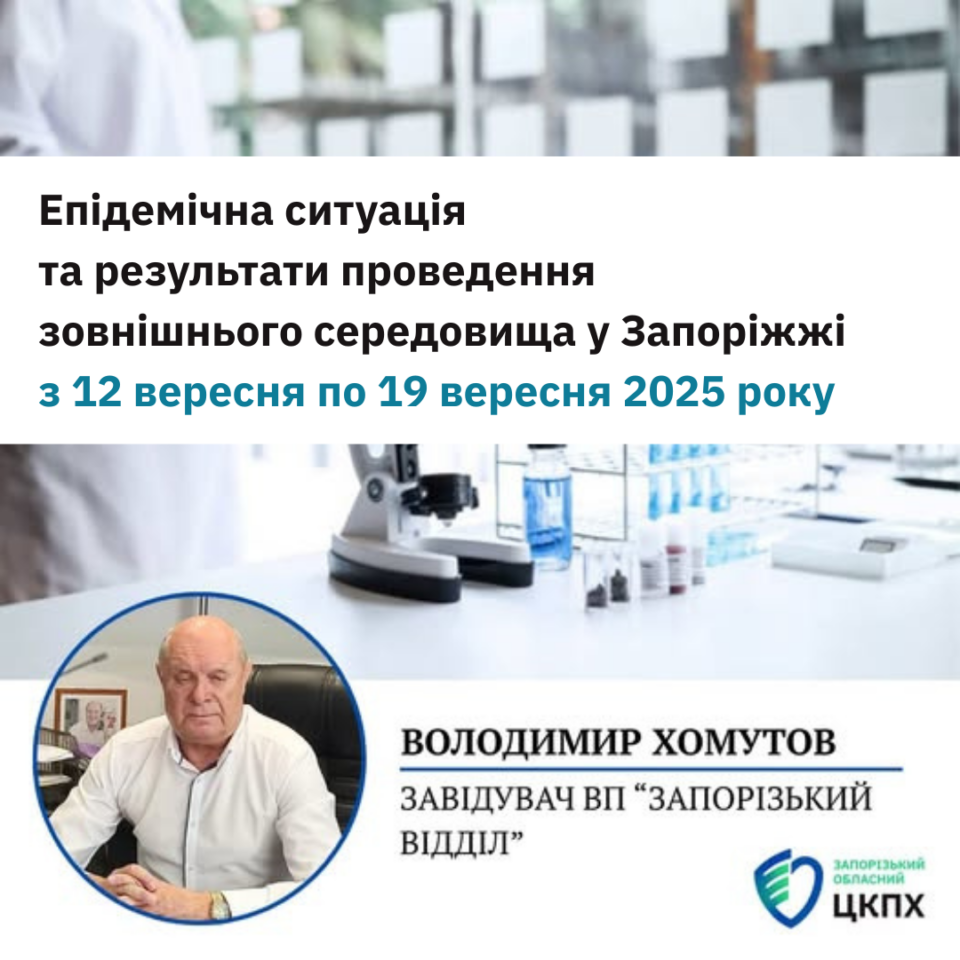 З 12 вересня по 19 вересня 2025 року здійснювався аналіз епідемічної ситуації та проведення моніторингових досліджень зовнішнього середовища у Запоріжжі.