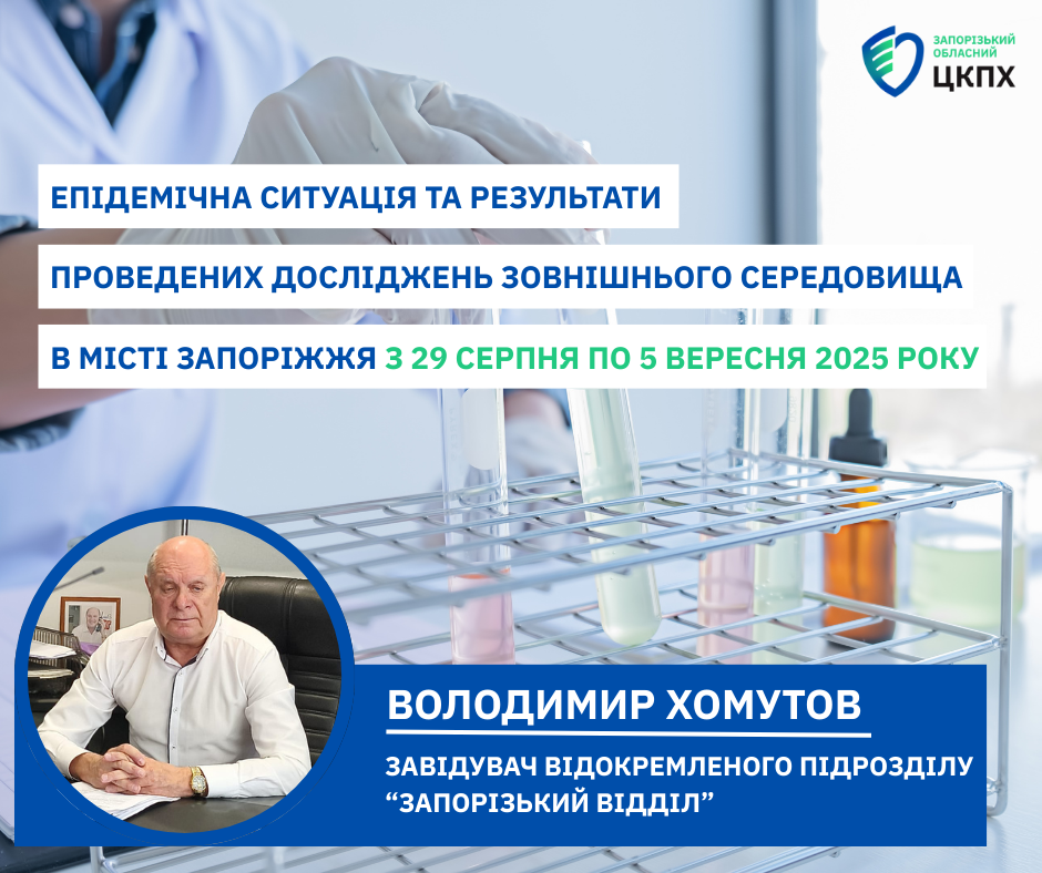 Епідемічна ситуація та результати проведених досліджень зовнішнього середовища в місті Запоріжжя з 29 серпня по 5 вересня 2025 року