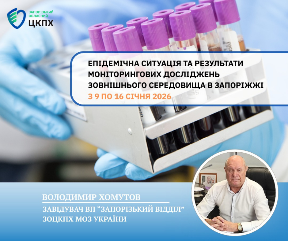 Епідемічна ситуація та аналіз моніторингових досліджень зовнішнього середовища на попередньому тижні з 9 січня 2026 року по 16 січня 2026 року в місті Запоріжжі.