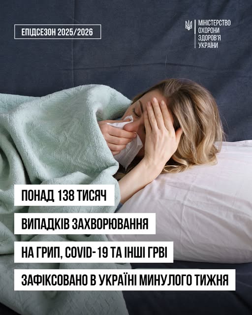 Від початку епідемічного сезону (29 вересня – 21 грудня 2025 року) на ГРВІ перехворіли 1 472 673 людини (на 4,5% більше, ніж торік за аналогічний період), зареєстровано 18 666 випадків COVID-19.