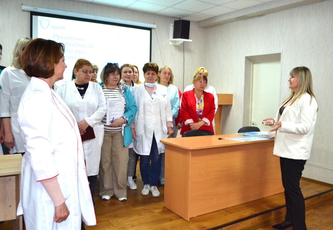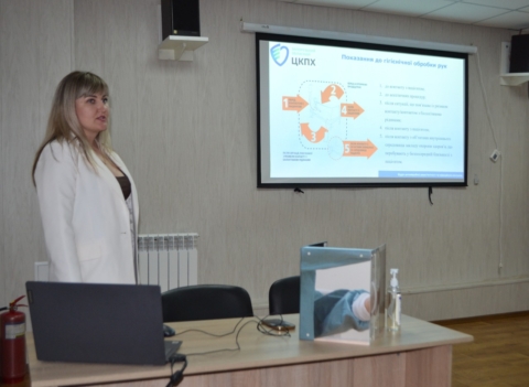Фахівці Центру також провели майстер-клас з гігієнічної обробки рук, у межах якого медики демонстрували правильні дії в ключових моментах:
