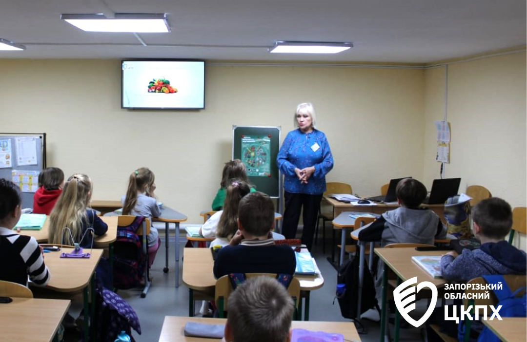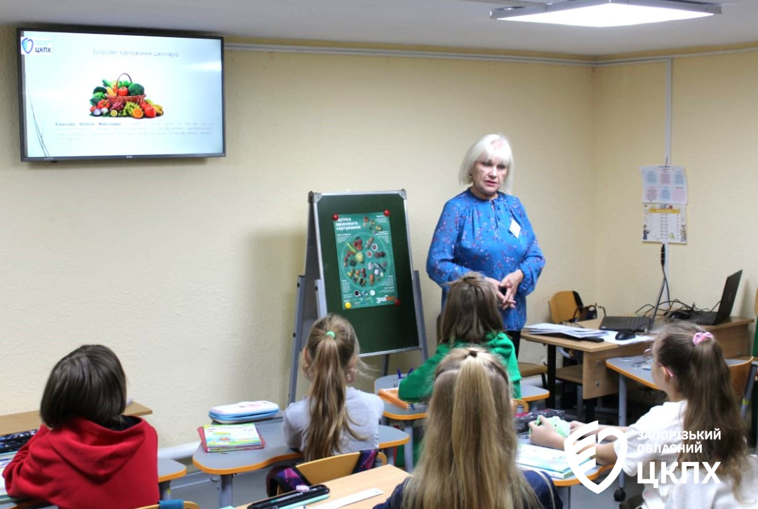 15 жовтня, напередодні Всесвітнього дня здорового харчування, лікар з гігієни дітей та підлітків відділу епідеміологічного нагляду (спостереження) та профілактики неінфекційних захворювань Наталія Кирилова відвідала КЗ «Запорізька загальноосвітня санаторна школа-інтернат №7 I-II ступенів ЗОР», де здійснила дві цікаві зустрічі для школярів 4-х класів та їх вчителів. Тема пізнавального заходу «Формування культури харчування та правильних харчових звичок – запорука здоров’я школярів».