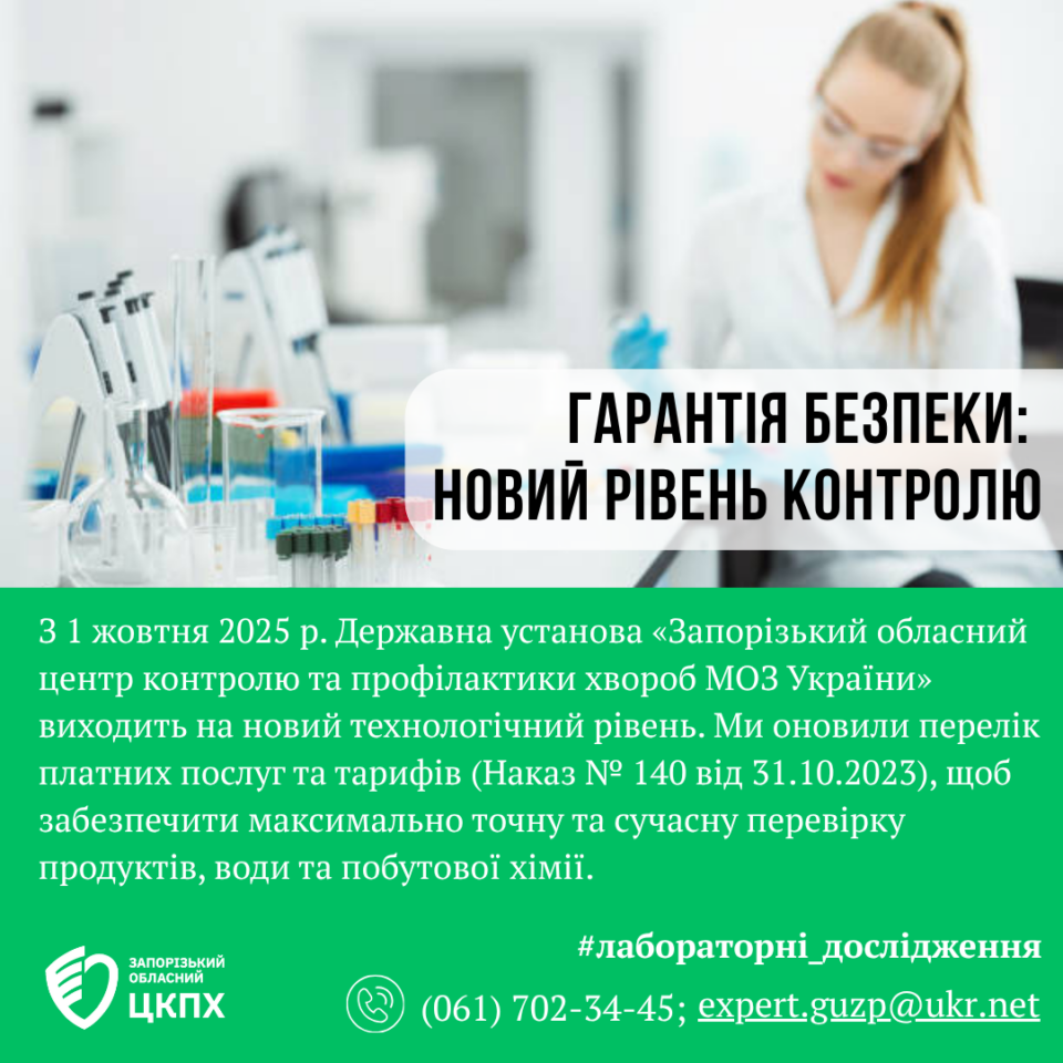 У нас гарна новина. З 1 жовтня 2025 року Державна установа «Запорізький обласний центр контролю та профілактики хвороб МОЗ України» виходить на новий технологічний рівень. Ми оновили перелік платних послуг та тарифів (Наказ № 140 від 31.10.2023), щоб забезпечити максимально точну та сучасну