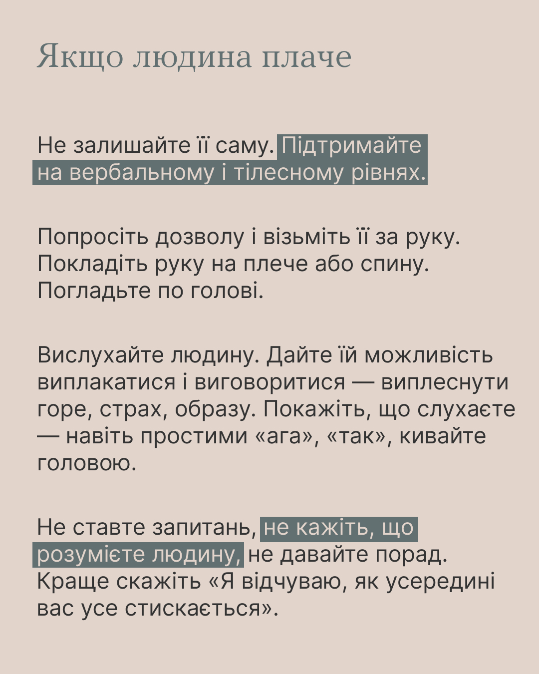 Підступні ворожі обстріли несуть не лише руйнування та загрозу фізичному здоров’ю, а й сильний стрес, здатний змінювати життя людей, які опинилися в епіцентрі лиха. В інфографіці від “Ти як?” нагадуємо дієві поради як допомогти при стресі, якщо поруч немає фахівця