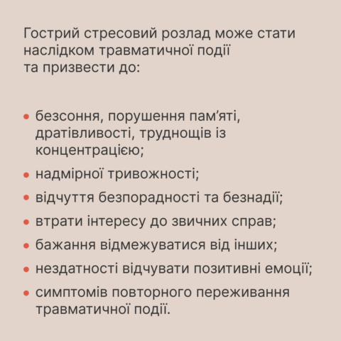 У інформації згадуємо, що таке гостра реакція на стрес та які її можливі наслідки.