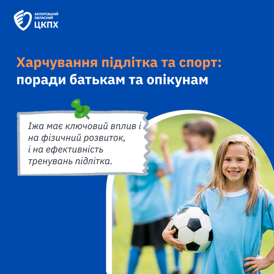 У цьому віці організм активно розвивається та росте, тому харчування має бути адекватним за калорійністю, збалансованим і поживним. До того ж обмін речовин підлітків під час спортивних навантажень пришвидшується у 1,5-2 рази інтенсивніше, ніж у дорослих. Тому поживних речовин і калорій вони мають отримувати більше.