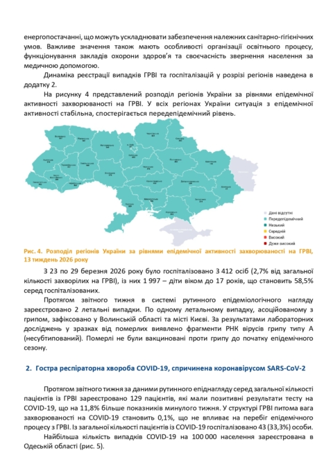Інформаційний бюлетень грип та ГРВІ в Україні 13 тиждень (23.03 – 29.03.2026)
