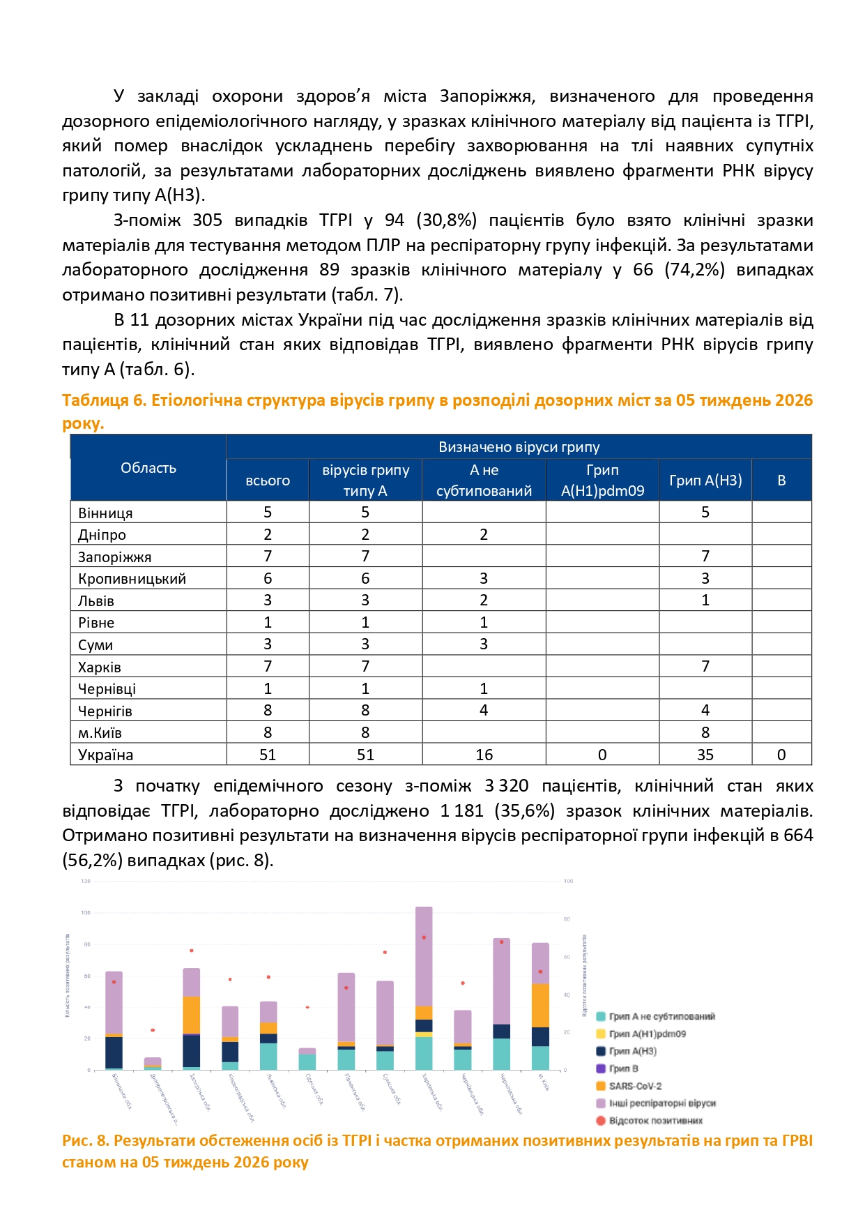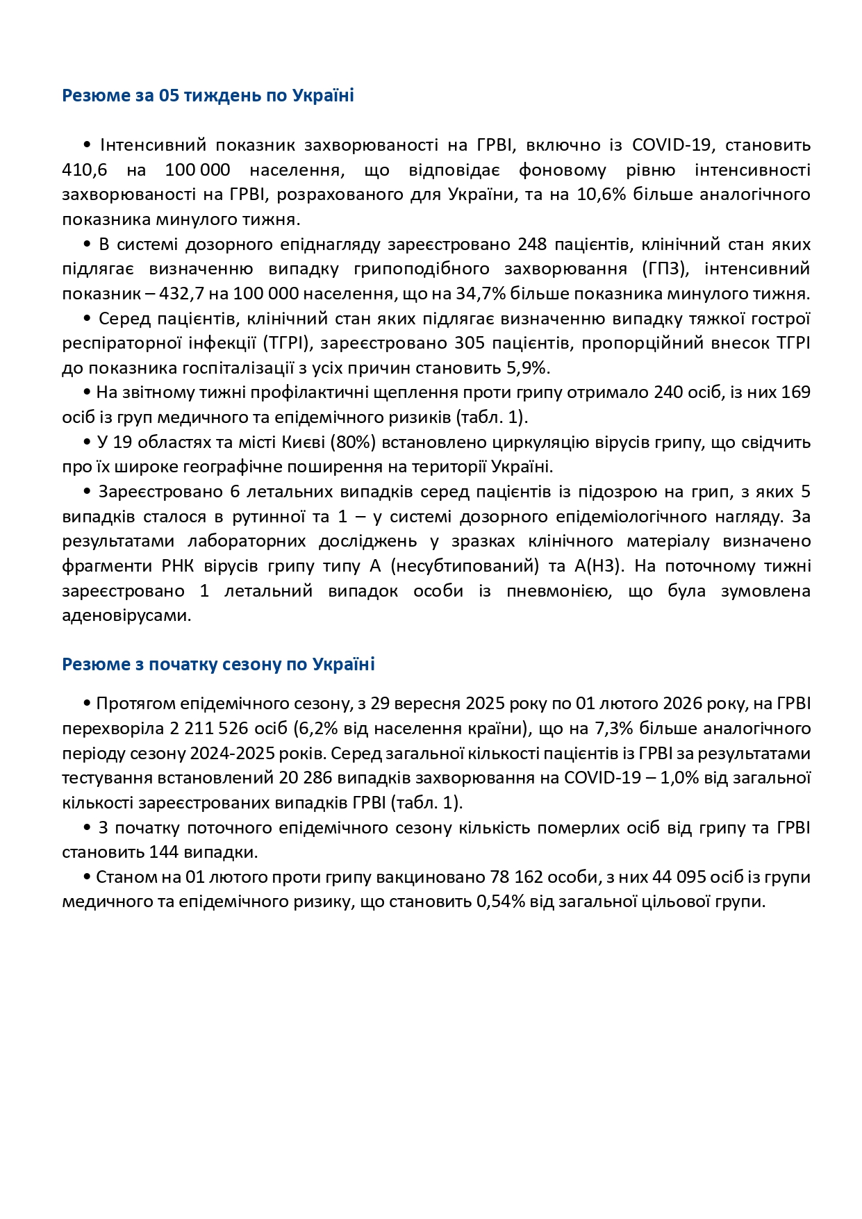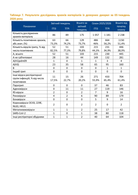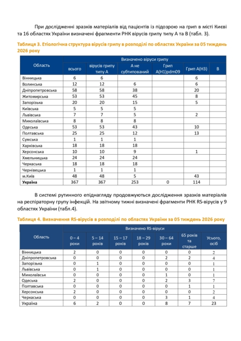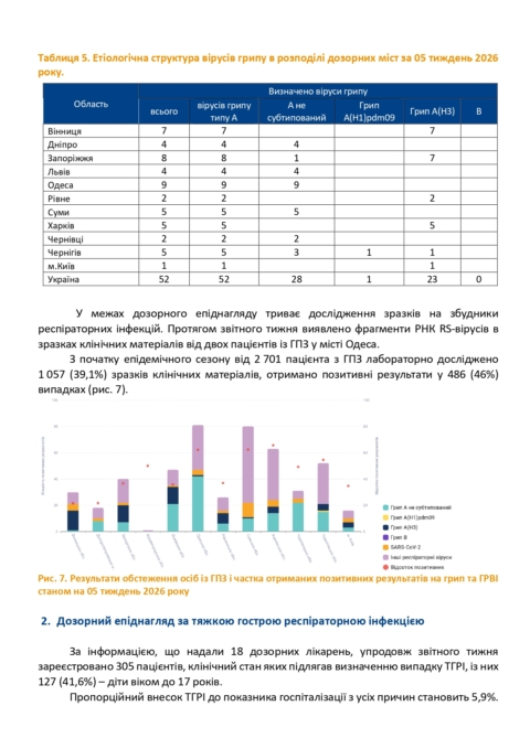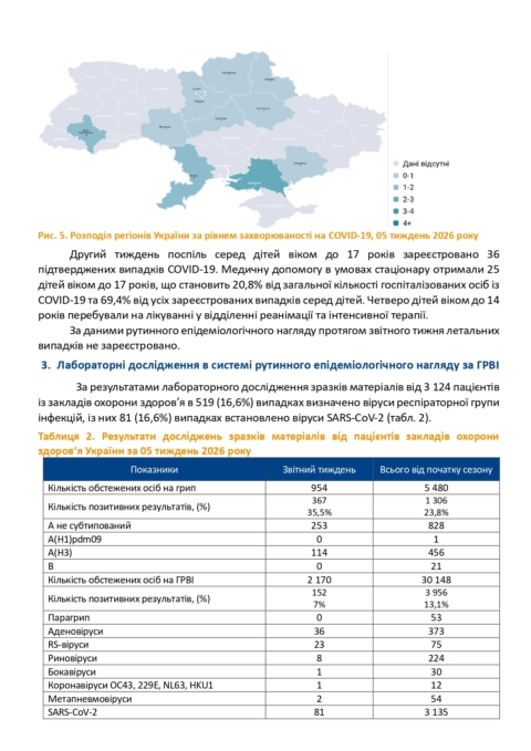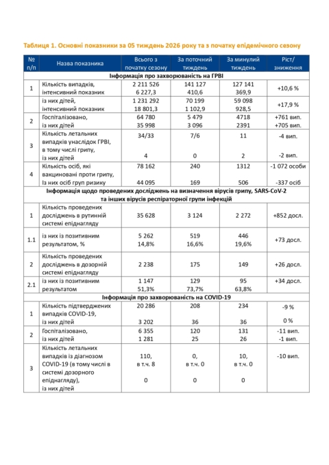 Інформаційний бюлетень грип та ГРВІ в Україні за 05 тиждень (26.01-01.02.2026)