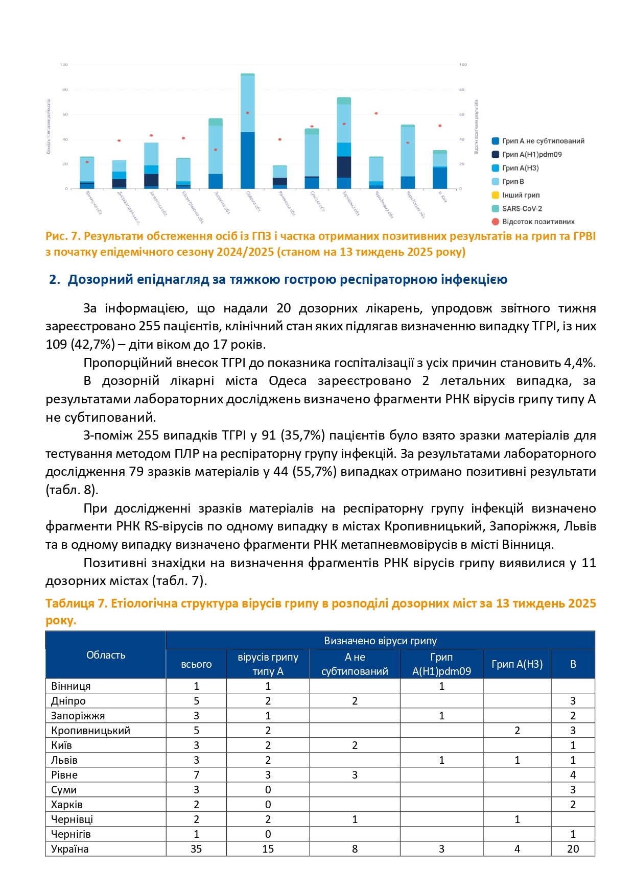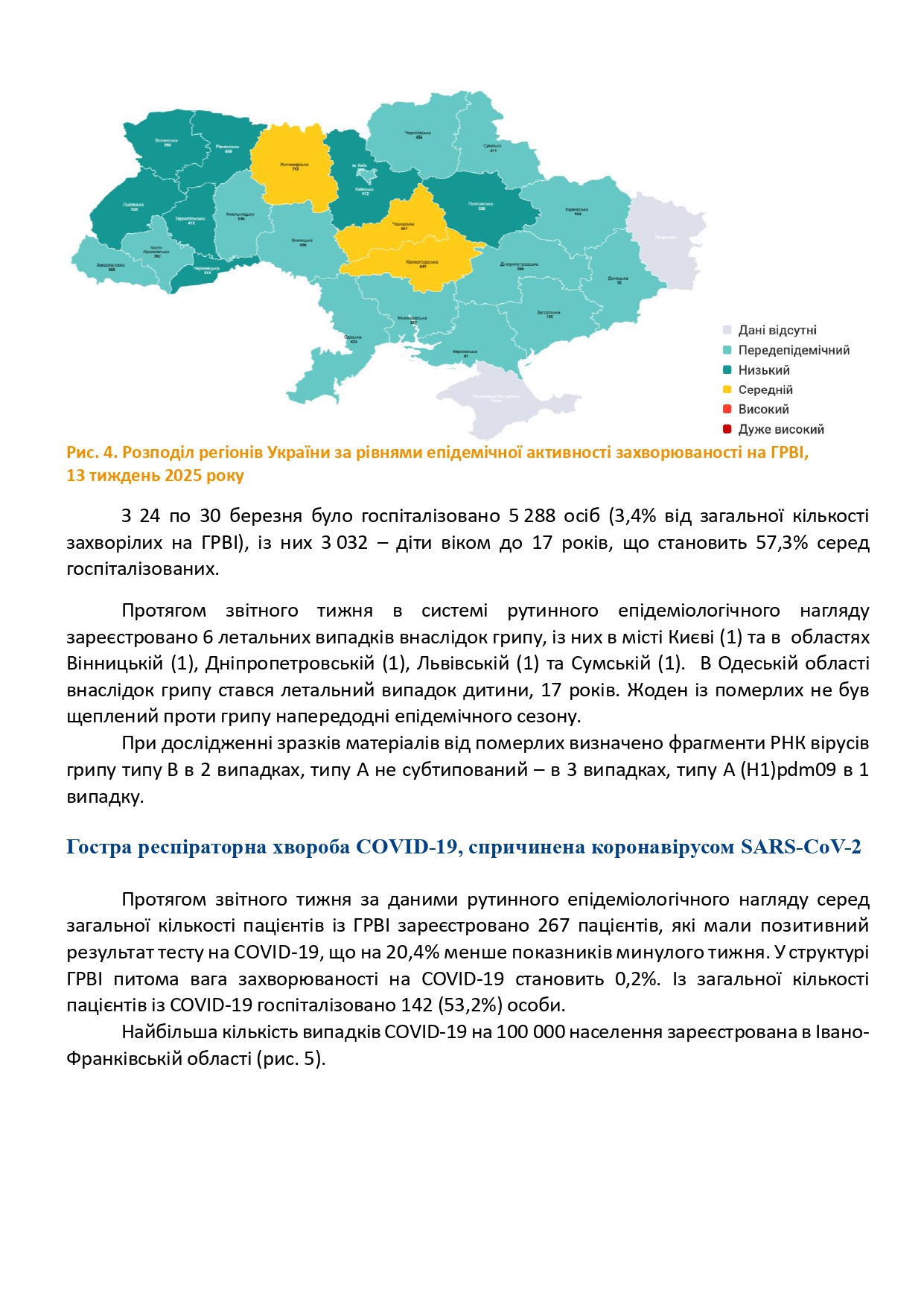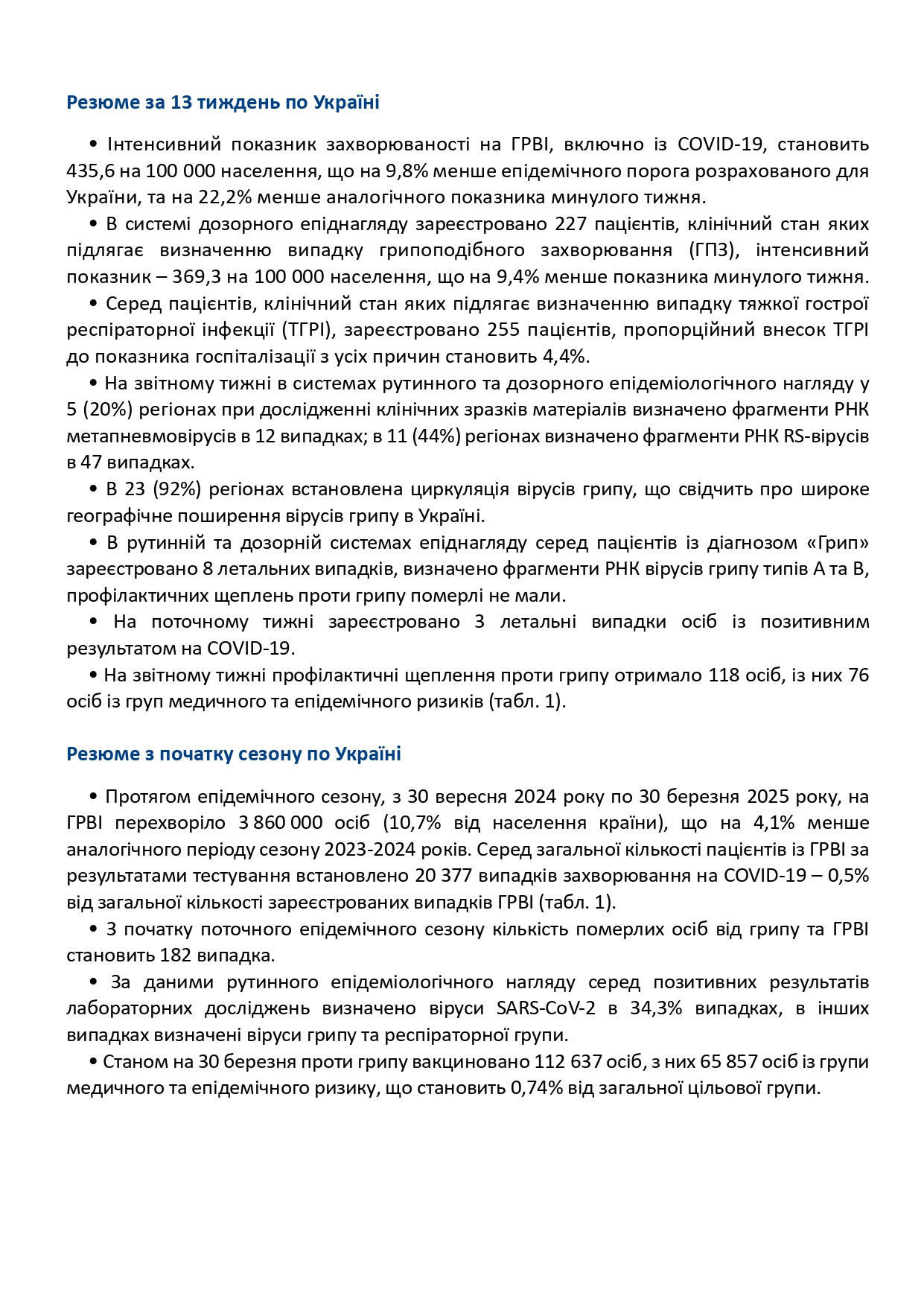 Інформаційний бюлетень «Грип та ГРВІ в Україні» за 13 тиждень (24-30.03.2025)
