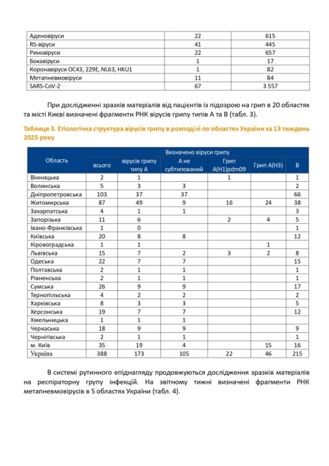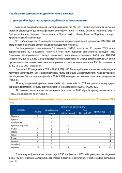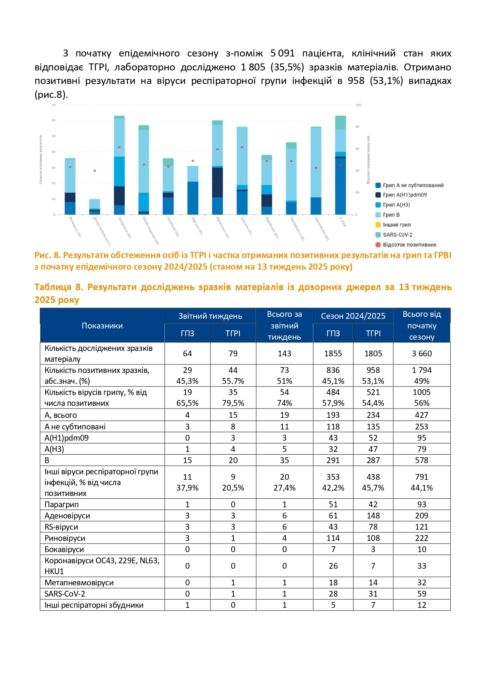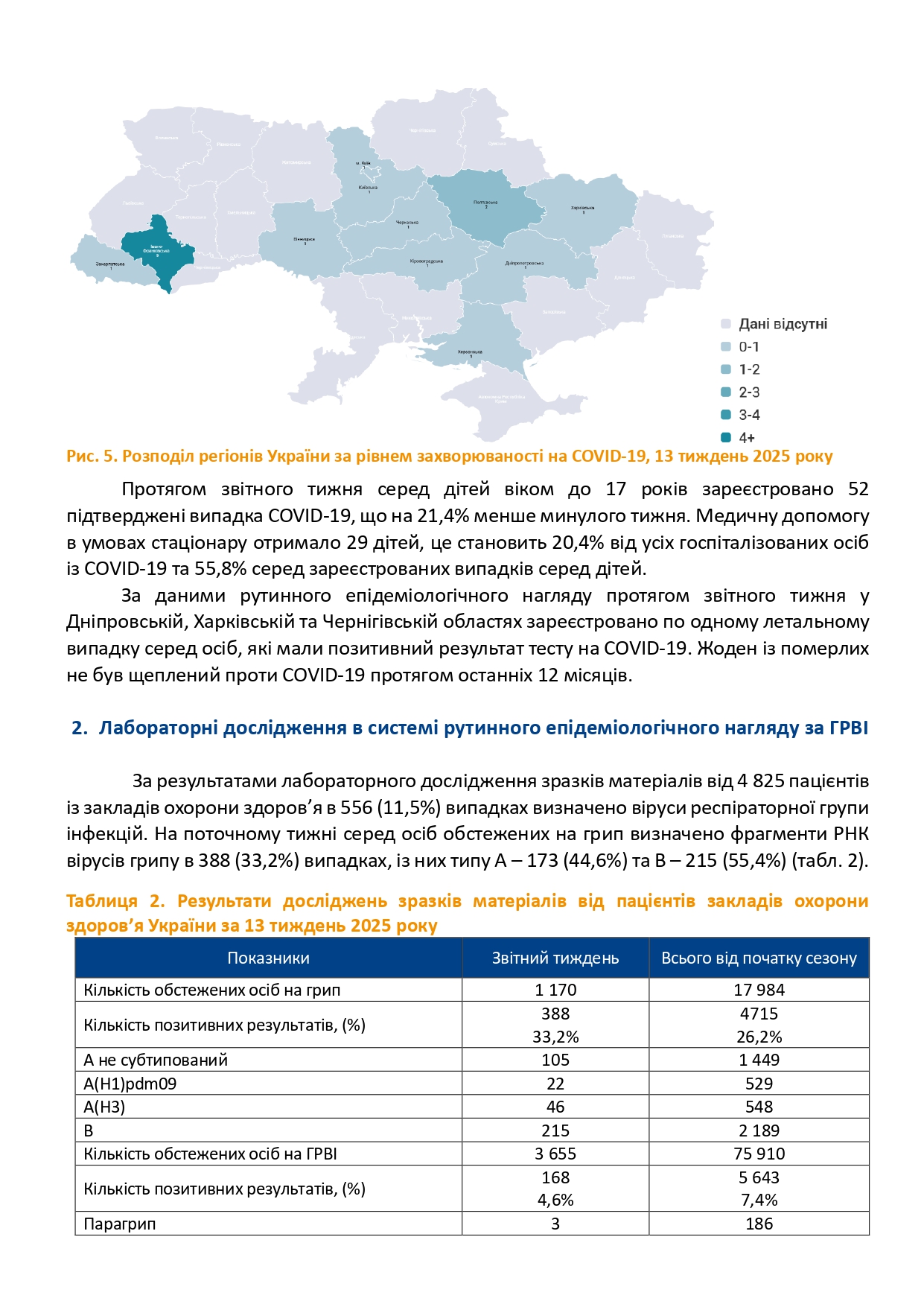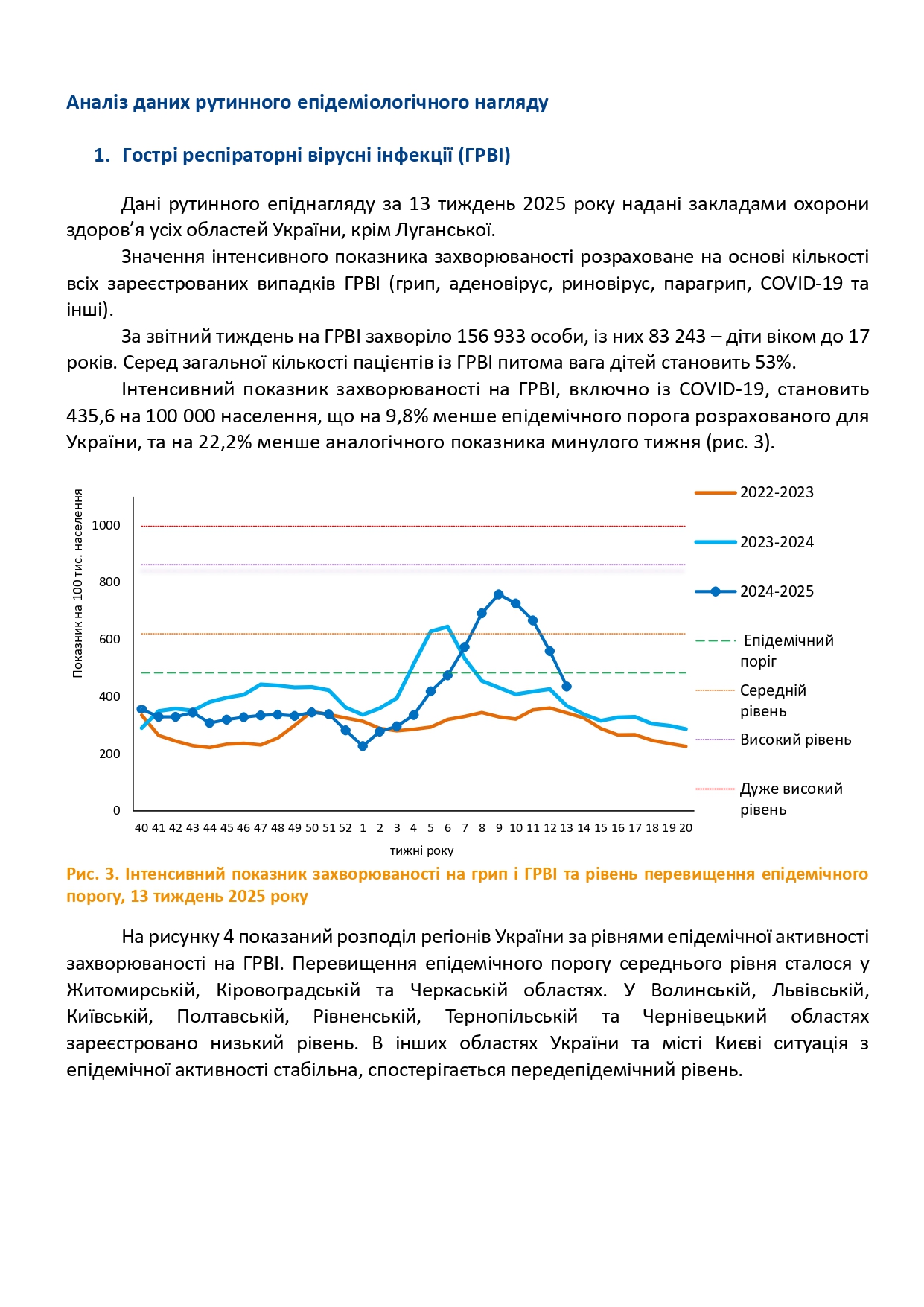 Інформаційний бюлетень «Грип та ГРВІ в Україні» за 13 тиждень (24-30.03.2025)