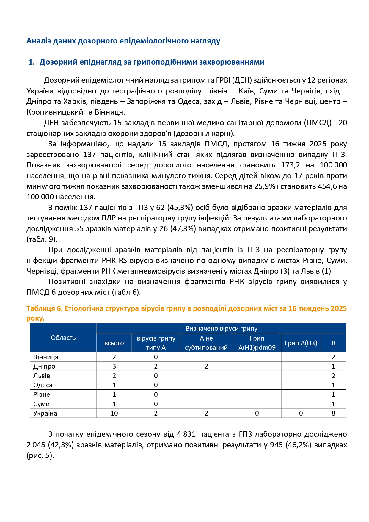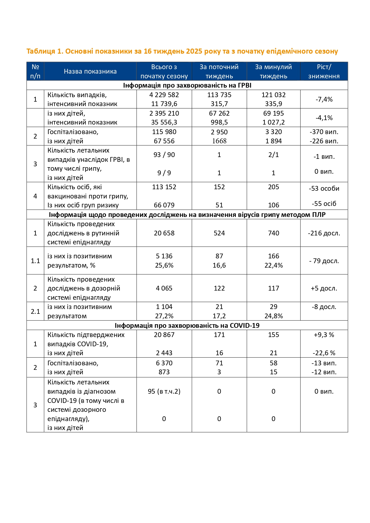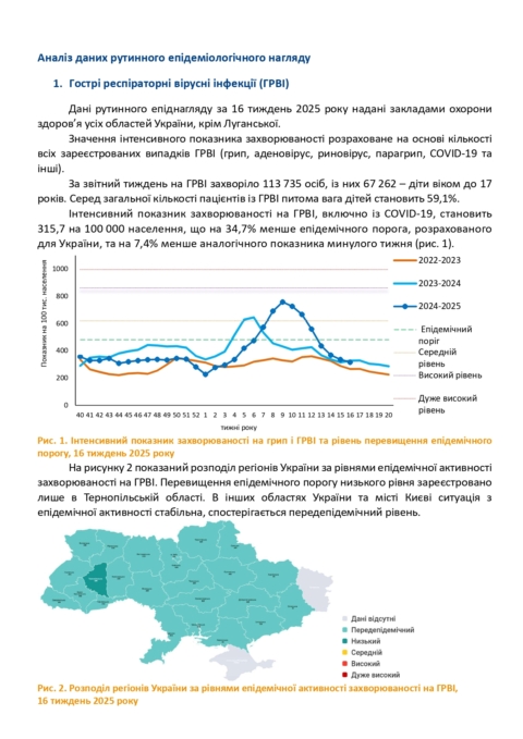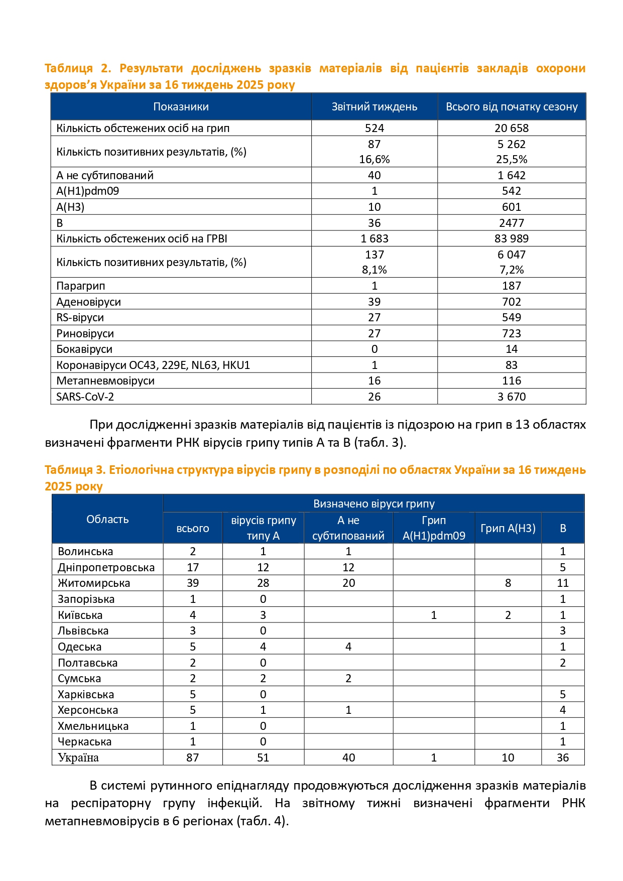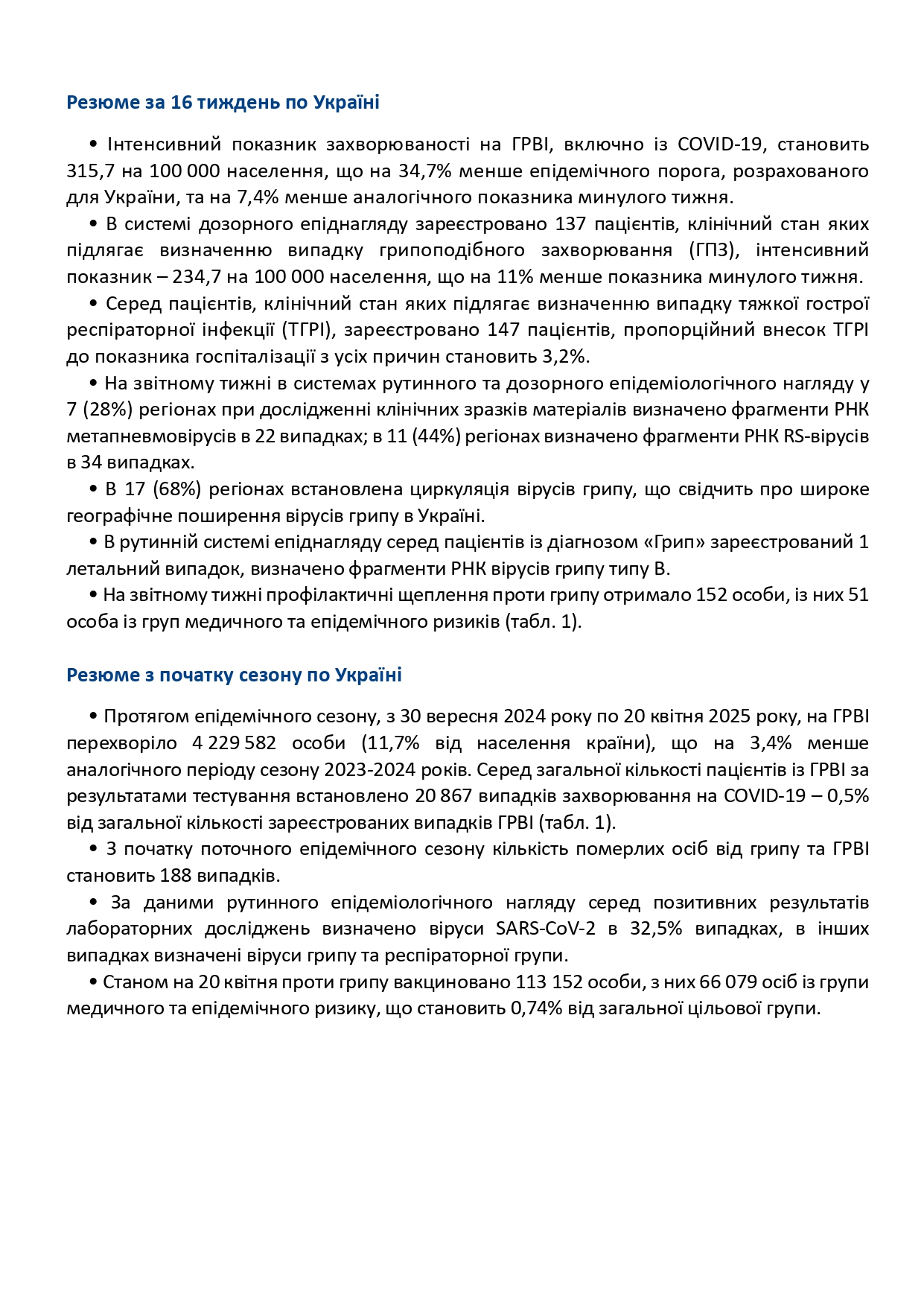 Інформаційний бюлетень “Грип та ГРВІ в Україні” за 16 тиждень (14-20 квітня 2025 року)