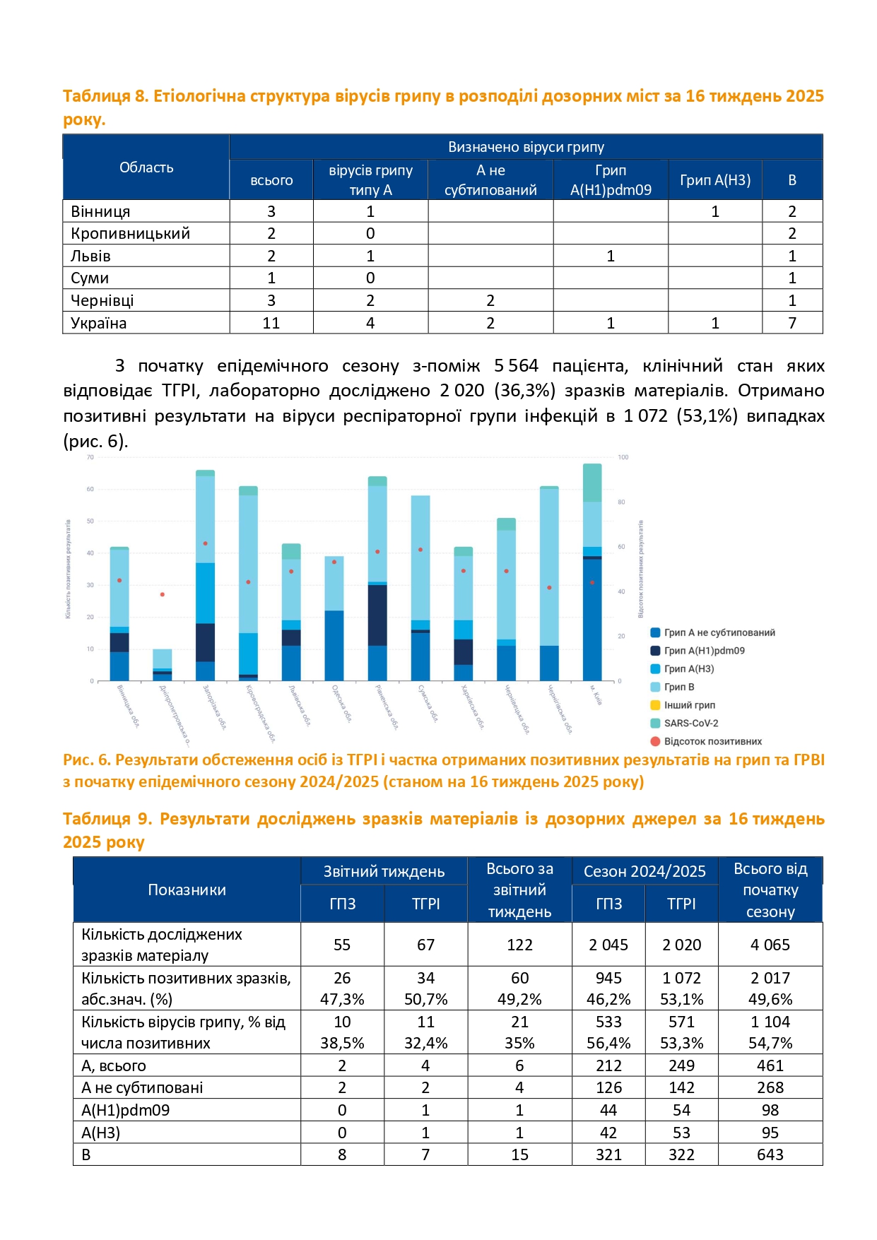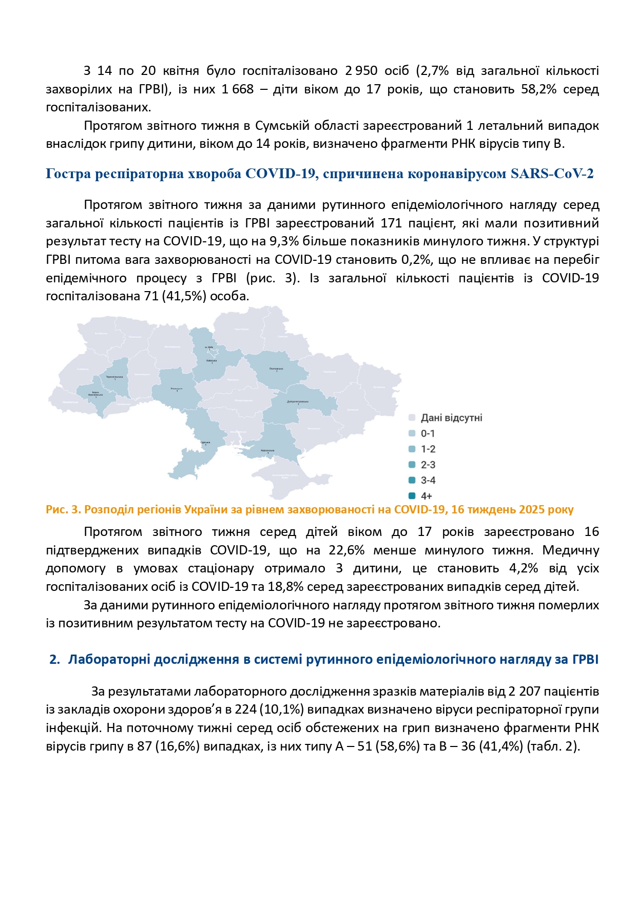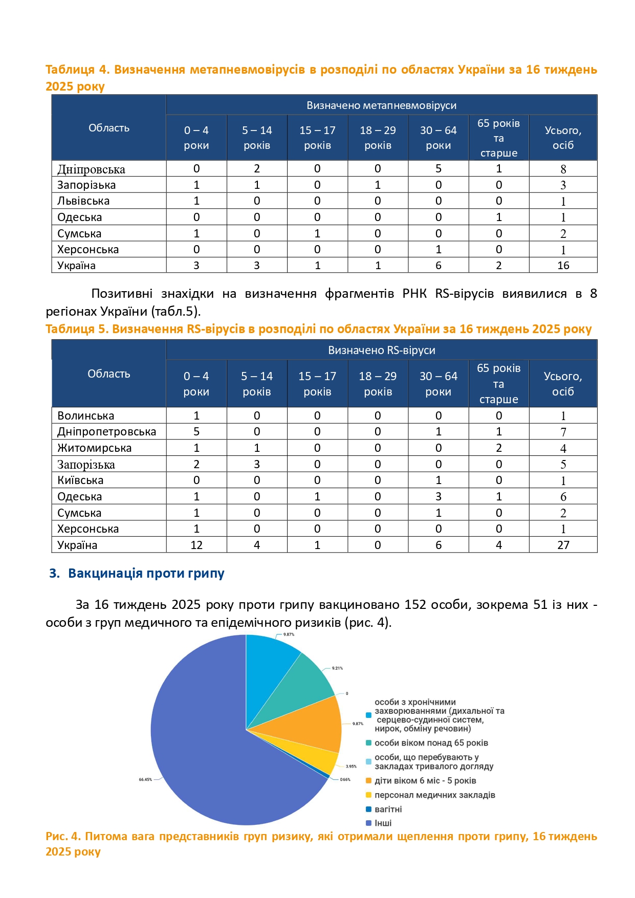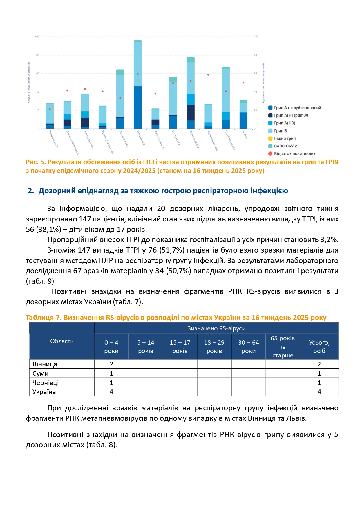 Інформаційний бюлетень “Грип та ГРВІ в Україні” за 16 тиждень (14-20 квітня 2025 року)