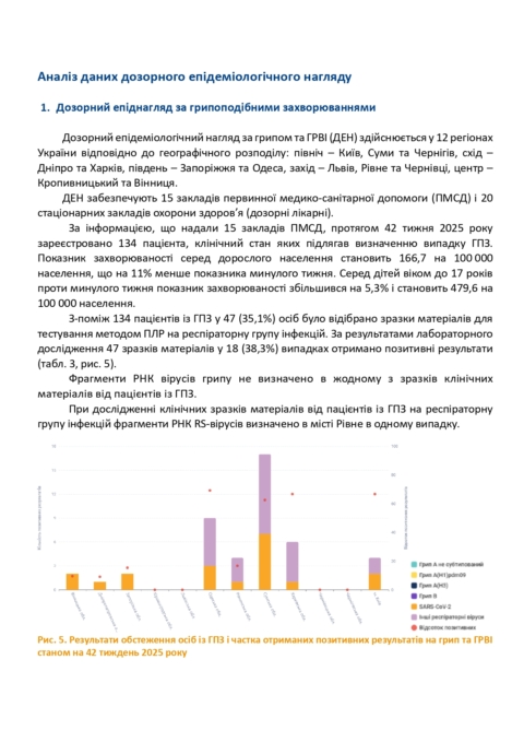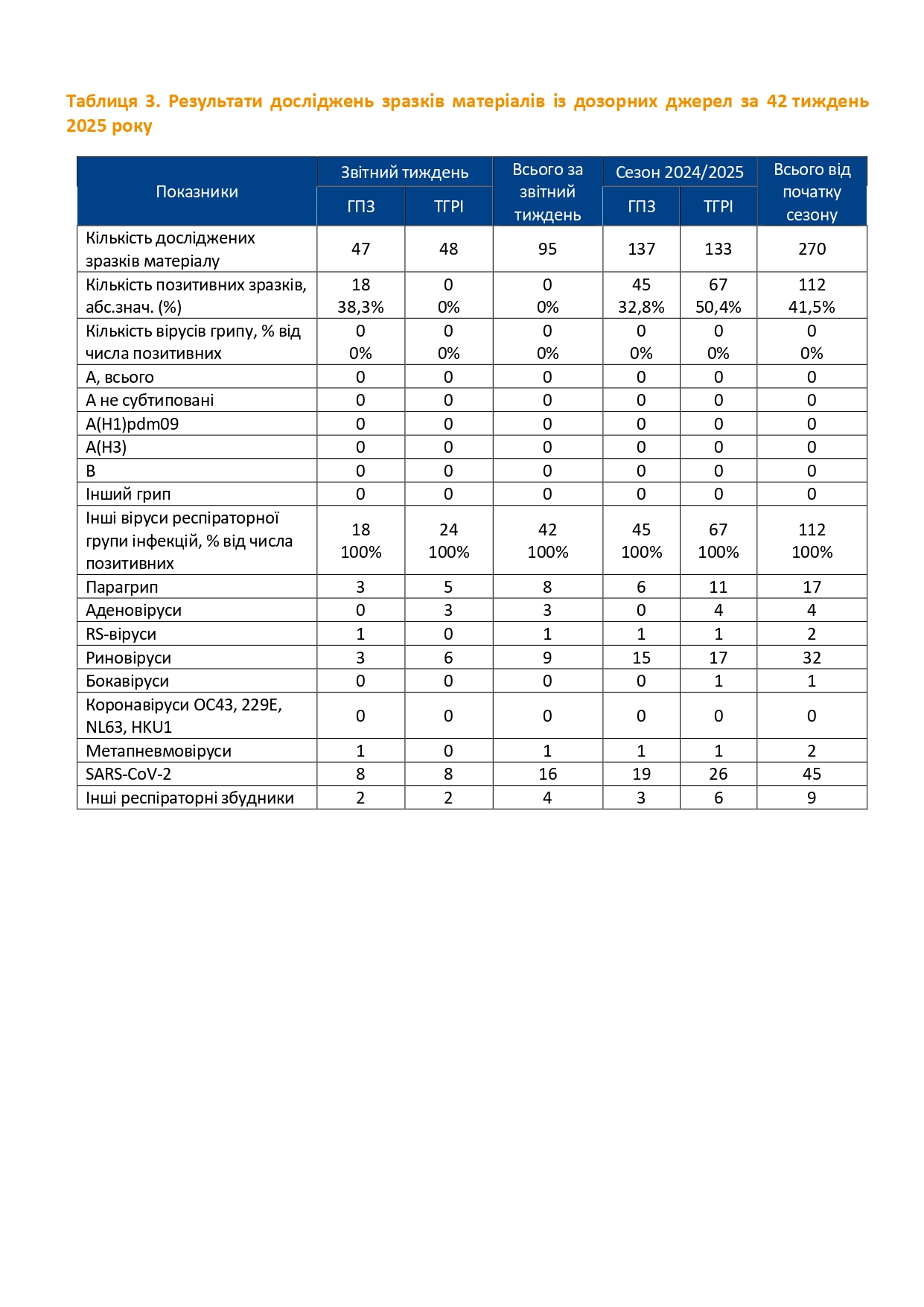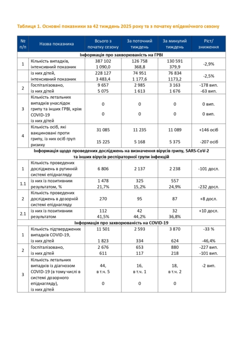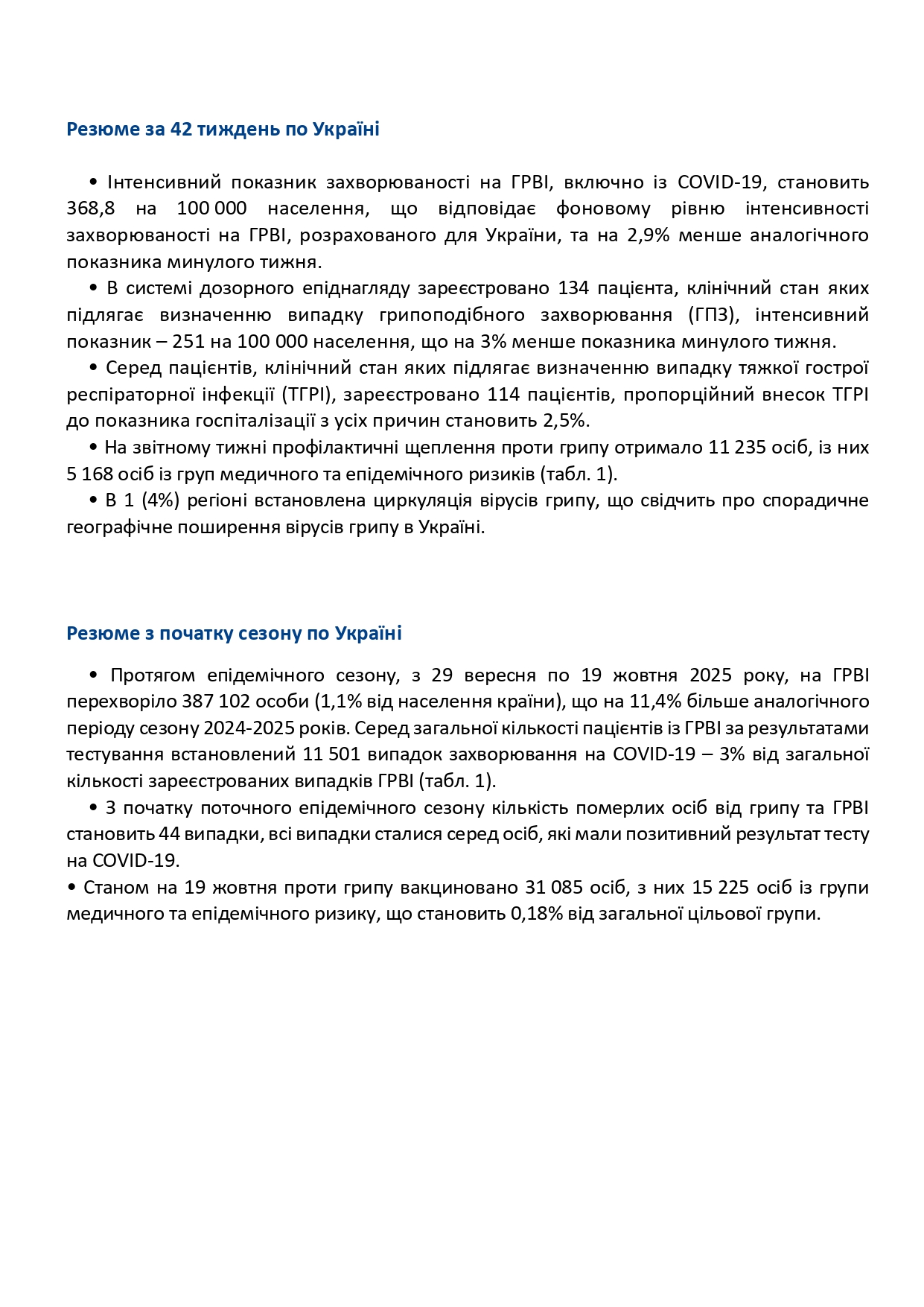 Інформаційний бюлетень «Грип та ГРВІ в Україні» за 42 тиждень (13-19 жовтня 2025 рік)