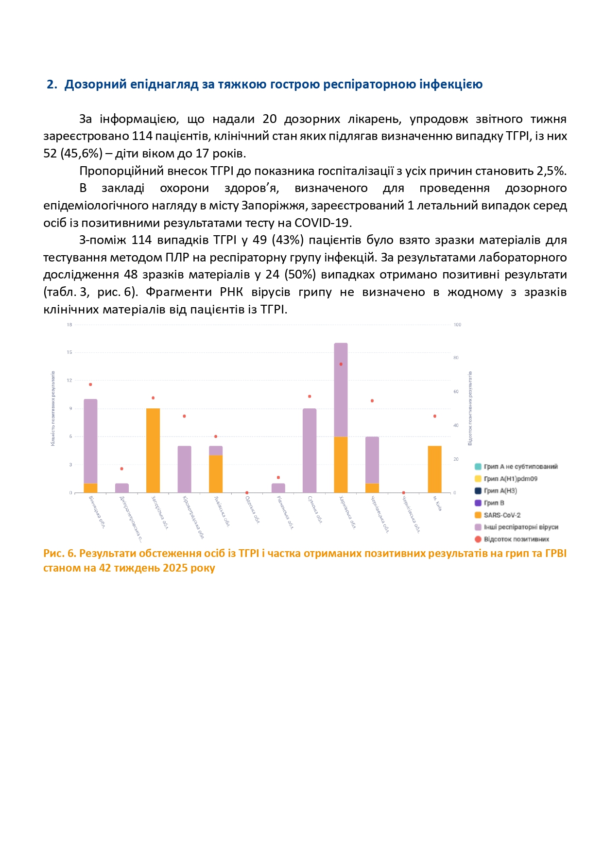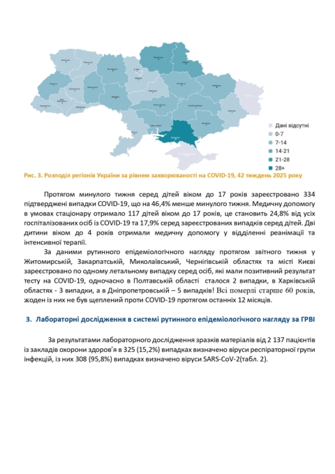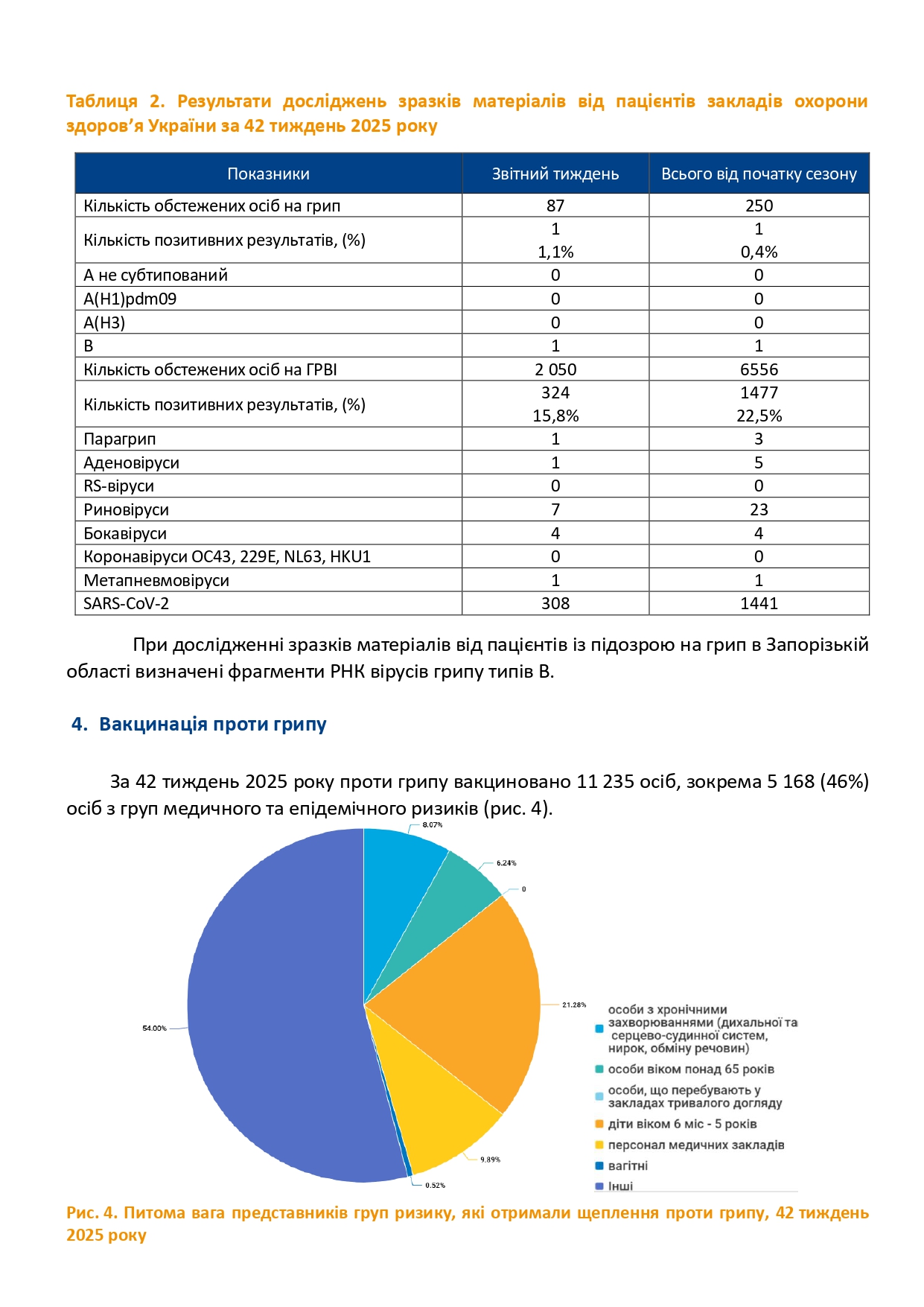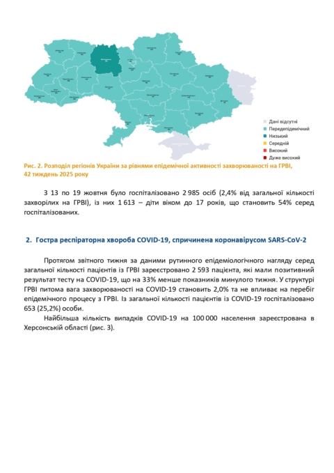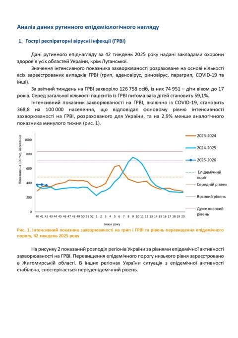 Інформаційний бюлетень «Грип та ГРВІ в Україні» за 42 тиждень (13-19 жовтня 2025 рік)