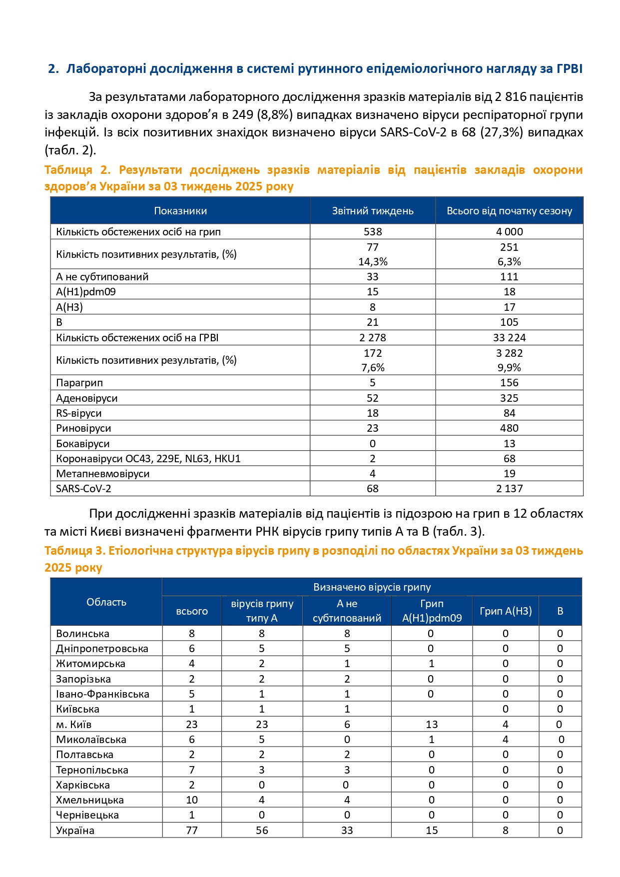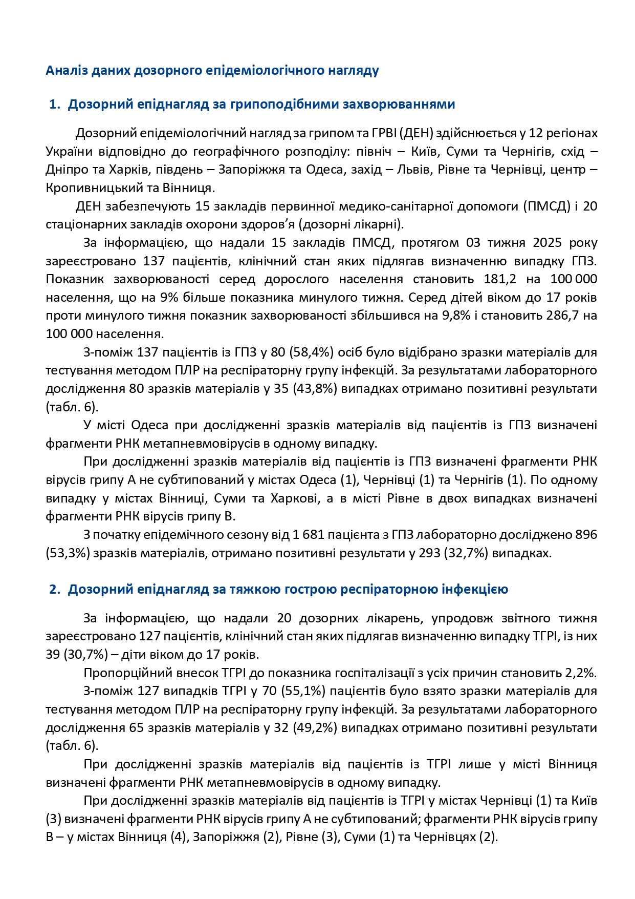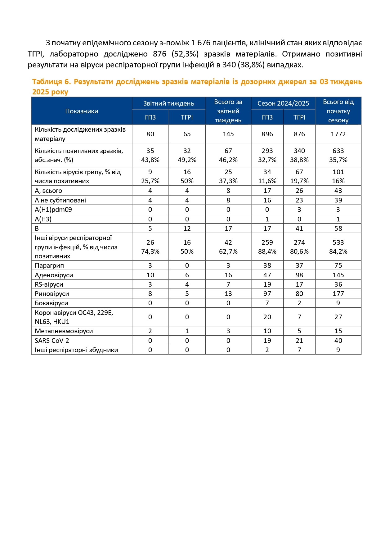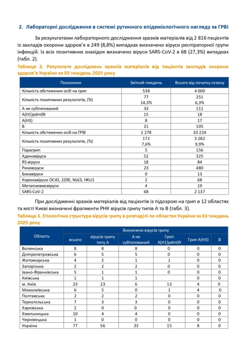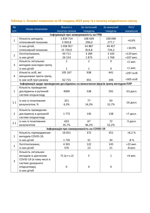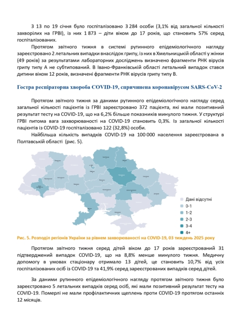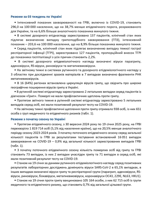 Інформаційний бюлетень захворюваності на грип та ГРВІ за 03 тиждень (13 -19.01.2025)