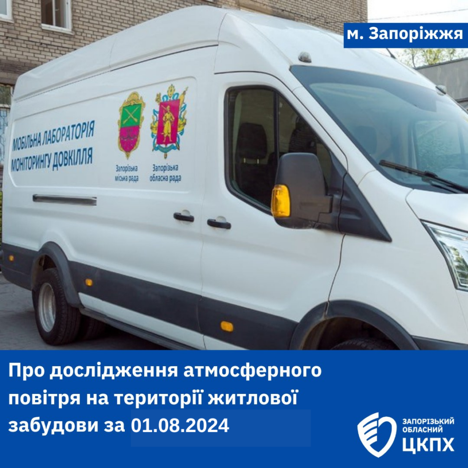 Інформація про дослідження атмосферного повітря на території житлової забудови 01.08.2024