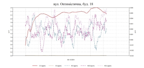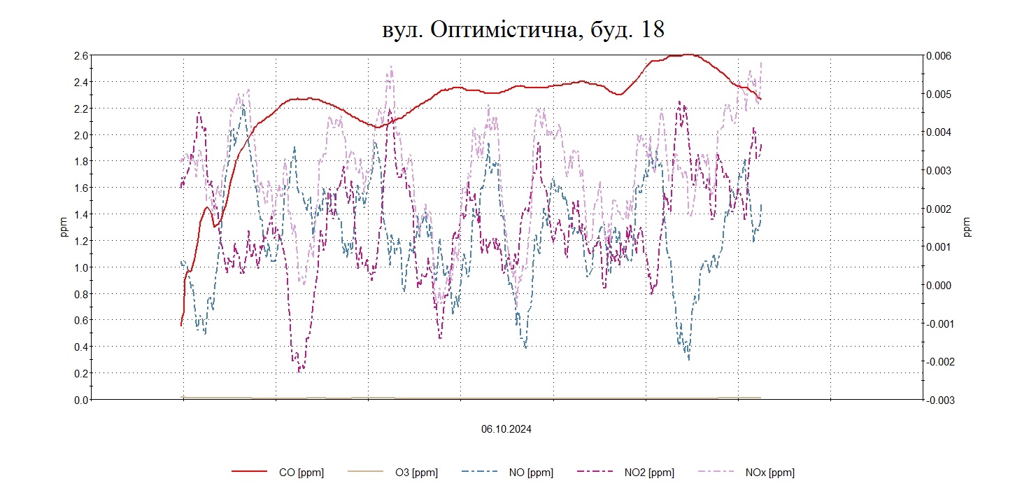 Протягом дня були проведені планові моніторингові дослідження атмосферного повітря на території житлової забудови по південно-східному напрямку факелу викидів в точках по вул. Зразкова, 1, О.Поради-Виробнича, Оптимістична, 18, Військбуд, 89 з визначенням максимально-разових концентрацій оксиду вуглецю, азоту оксиду, азоту діоксиду , озону, пилу недиференційованого за складом, сірководню .
