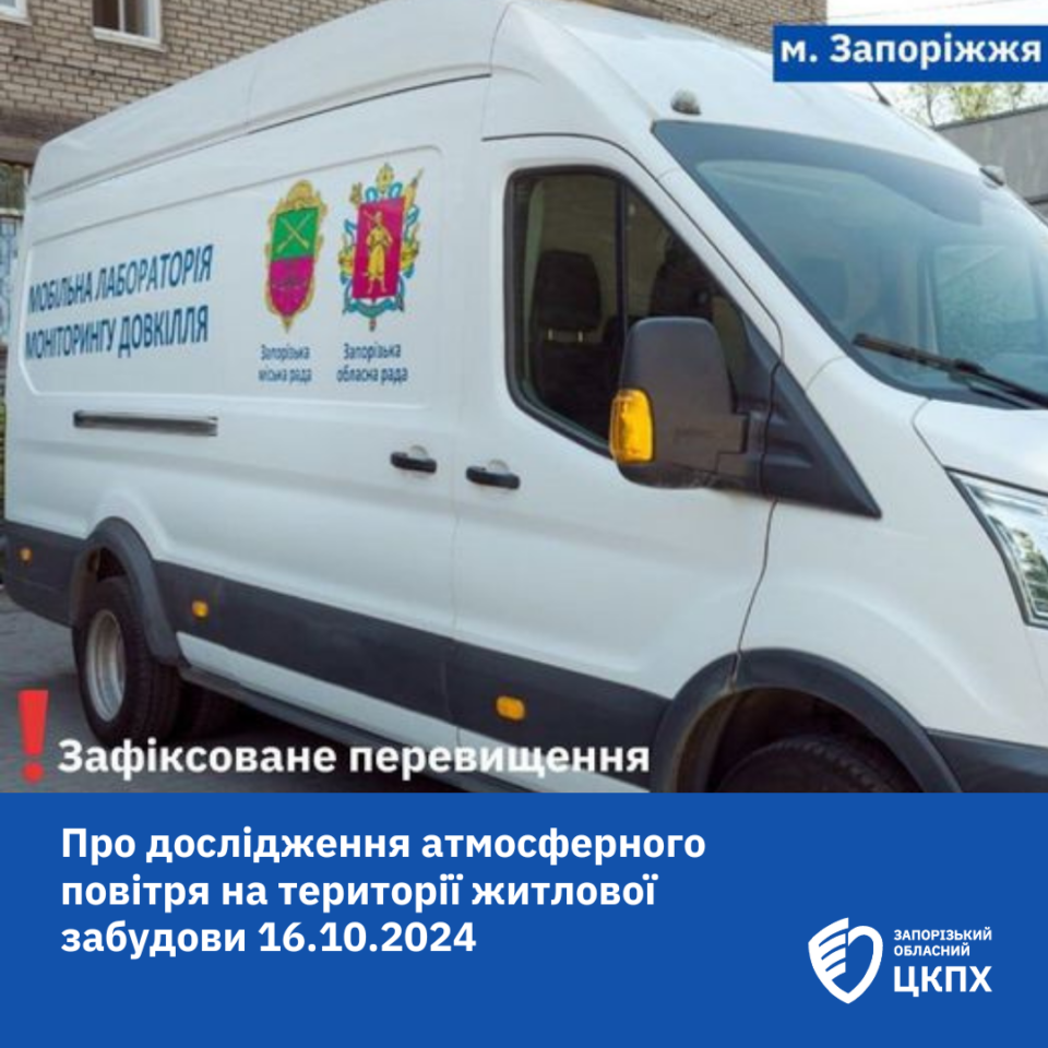 Інформація про дослідження атмосферного повітря на території житлової забудови 16.10.2024
