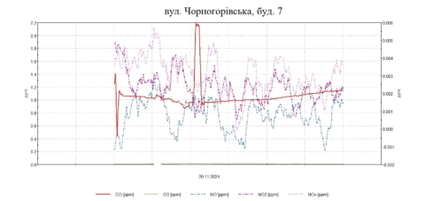 Інформація про дослідження атмосферного повітря на території житлової забудови 20 листопада 2024