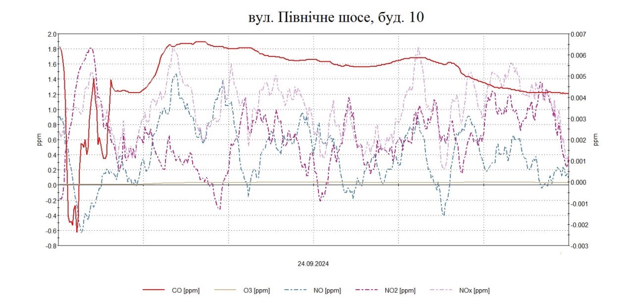 25 вересня 2024Протягом дня були проведені планові моніторингові дослідження атмосферного повітря на території житлової забудови по східному , південно-східному напрямку факелу викидів в точках по вул. Північне шосе,10, О.Кобилянської,2 з визначенням максимально-разових концентрацій оксиду вуглецю, сірководню, ангідриду сірчистого, формальдегіду, аміаку, азоту оксиду, азоту діоксиду, озону, фенолу, пилу недиференційованого за складом, хлору.