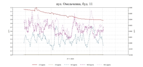 Інформація про дослідження атмосферного повітря на території житлової забудови за 27 листопада