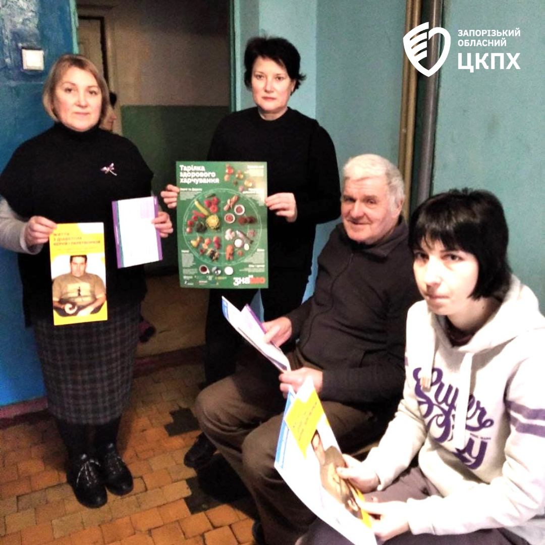 Фахівці Запорізького ОЦКПХ продовжують інформування населення з питань промоції здорового способу життя. 14 листопада фахівці Запорізького відділення – лікар з гігієни дітей та підлітків Ганна Турчаненко, фельдшери санітарні Ольга Ліпська, Вікторія Костюк здійснили робочі візити до місць проживання внутрішньо переміщених осіб.