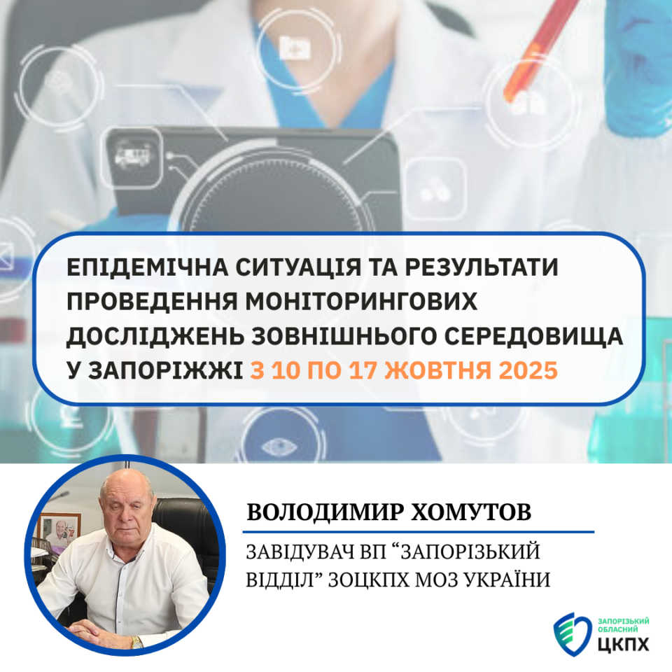 Інформуємо про епідемічну ситуацію та результати проведення дослідження зовнішнього середовища у м. Запоріжжя