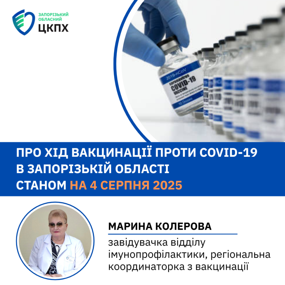 Інформуємо про хід вакцинації проти COVID-19 у Запорізькій області станом на 4 серпня 2025 року