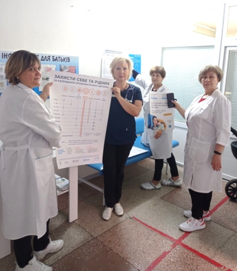 Під час зустрічей фахівцями розповсюджено друковані тематичні матеріали про інфекційні захворювання, їх профілактику, технологію холодового ланцюга, необхідність вакцинації для дітей та дорослих. В тому числі передані плакати “Захисти себе та рідних. Календар профілактичних щеплень”.