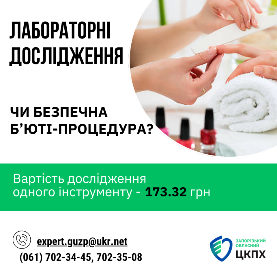 На базі бактеріологічної лабораторії ДУ «Запорізький ОЦКПХ МОЗ» можна зробити всі необхідні дослідження та отримати відповідний експертний висновок.